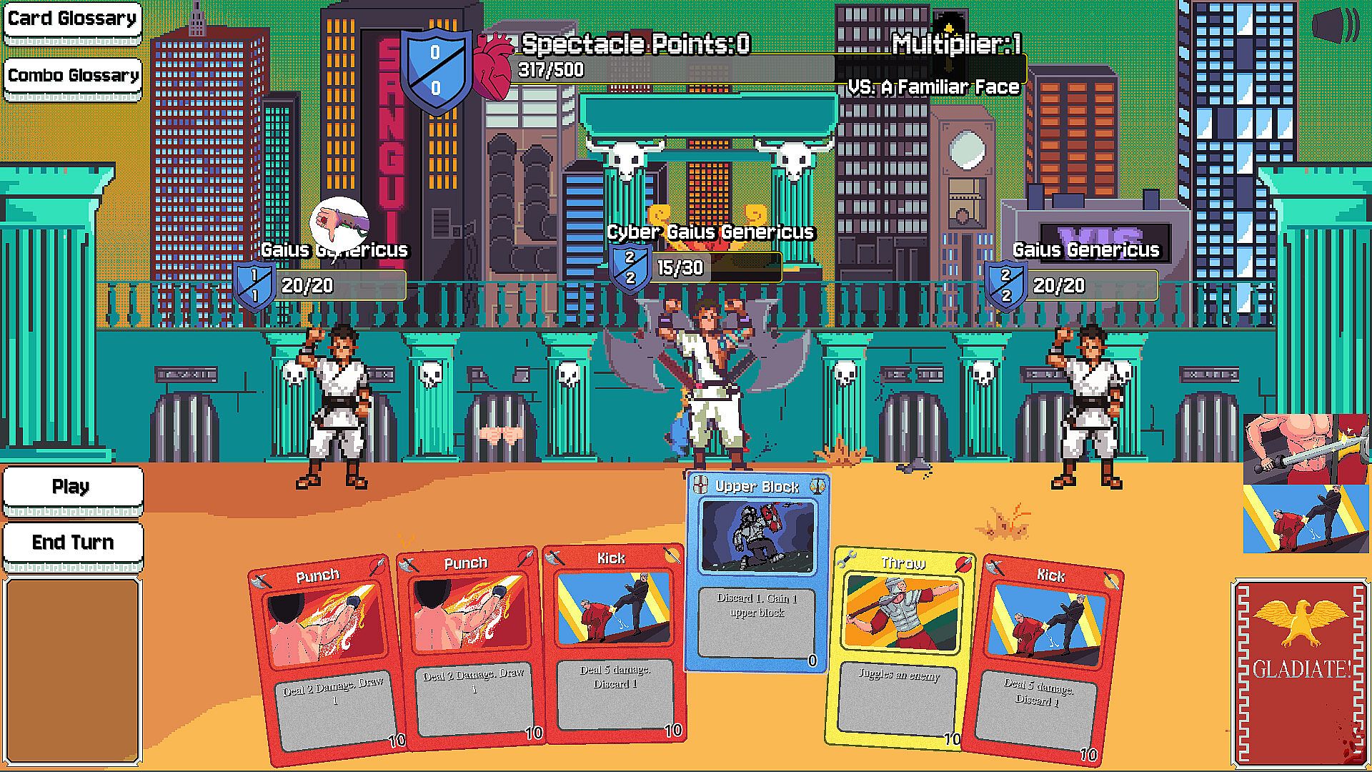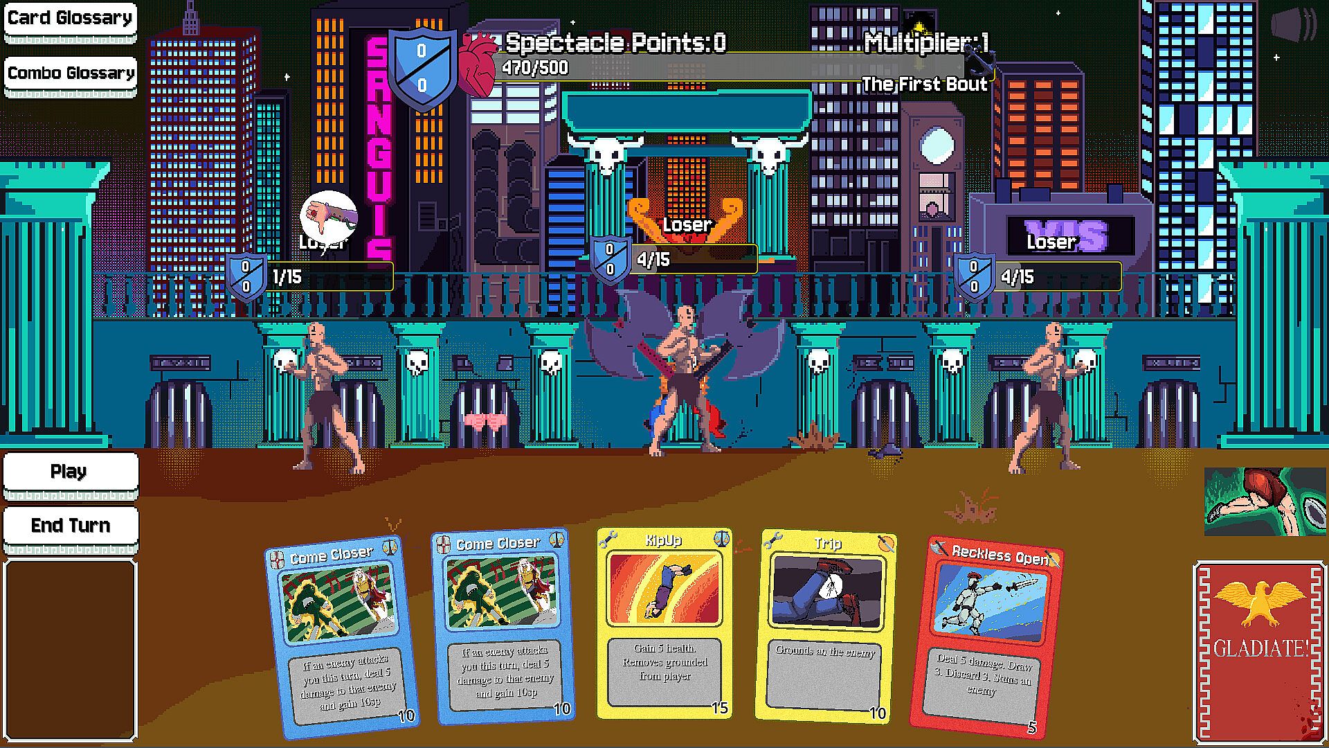 Gladiate is a spectacle fighter card game, where its not about how fast you win, its about how cool you look doing it.