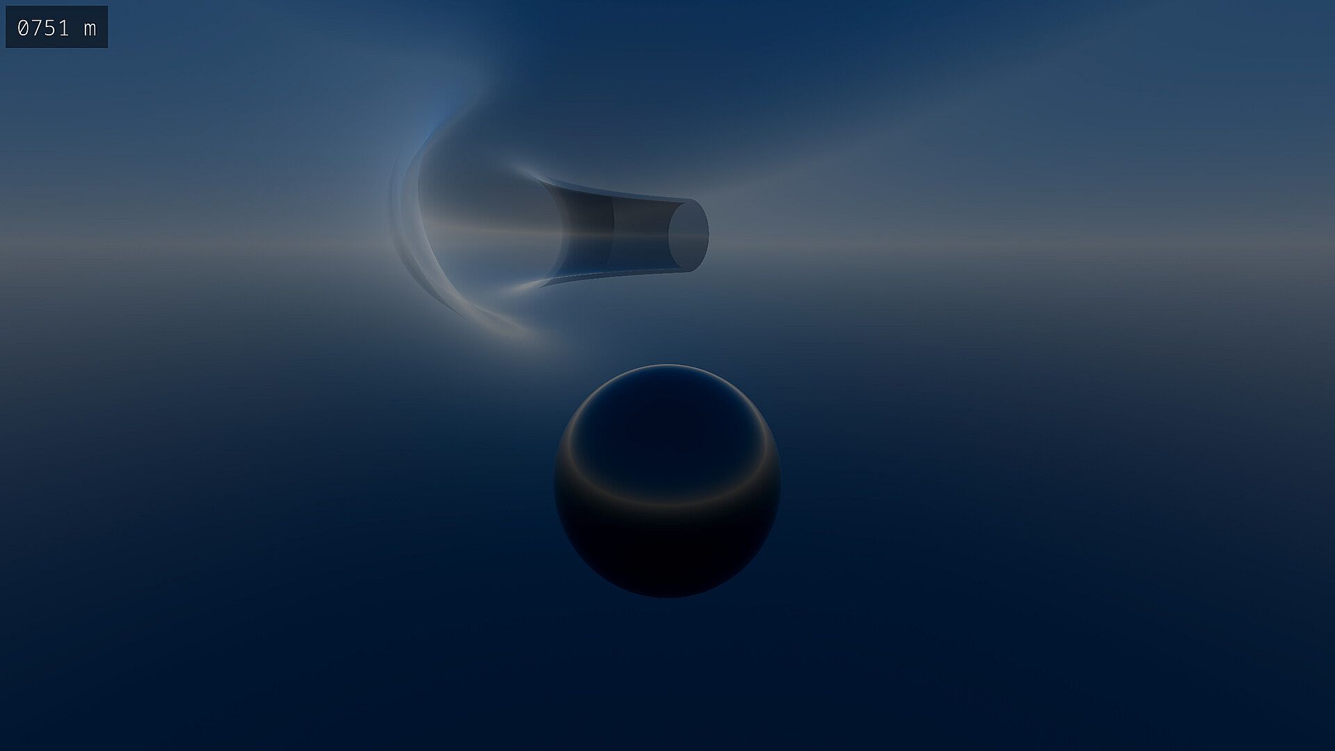 A track begins at a start terminal with an altitude of 1,024 meters and will tend downhill. Once below 64 meters, an end terminal will be generated and the track will finish. Your altitude is shown in the upper-left corner of the screen. If playing in fragile mode, a timer is shown next to the altimeter which displays the time which has elapsed since starting the track.