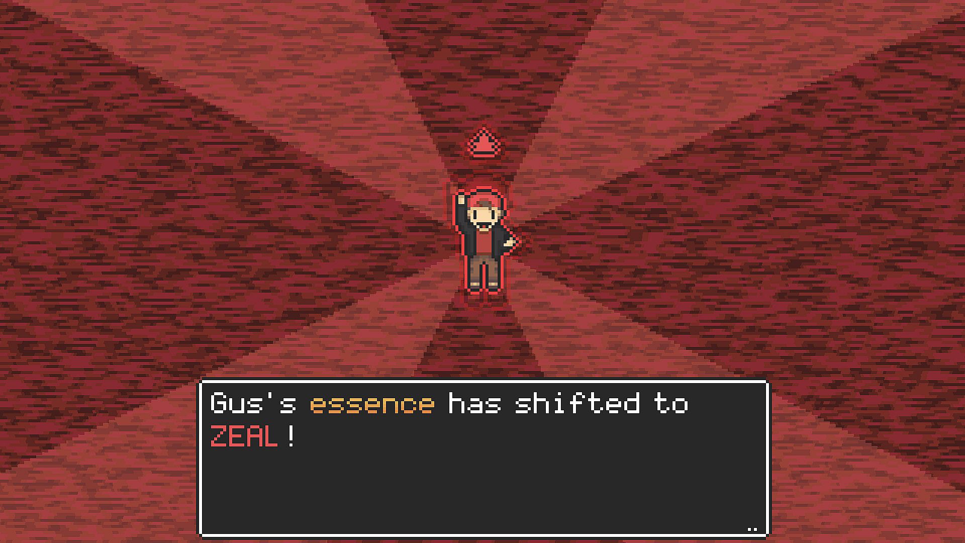 Making choices will change Gus's essence. His essence determines his personality, grants him new powers, and causes characters to react differently to him. There are six different essences and playing as each will provide a unique experience.