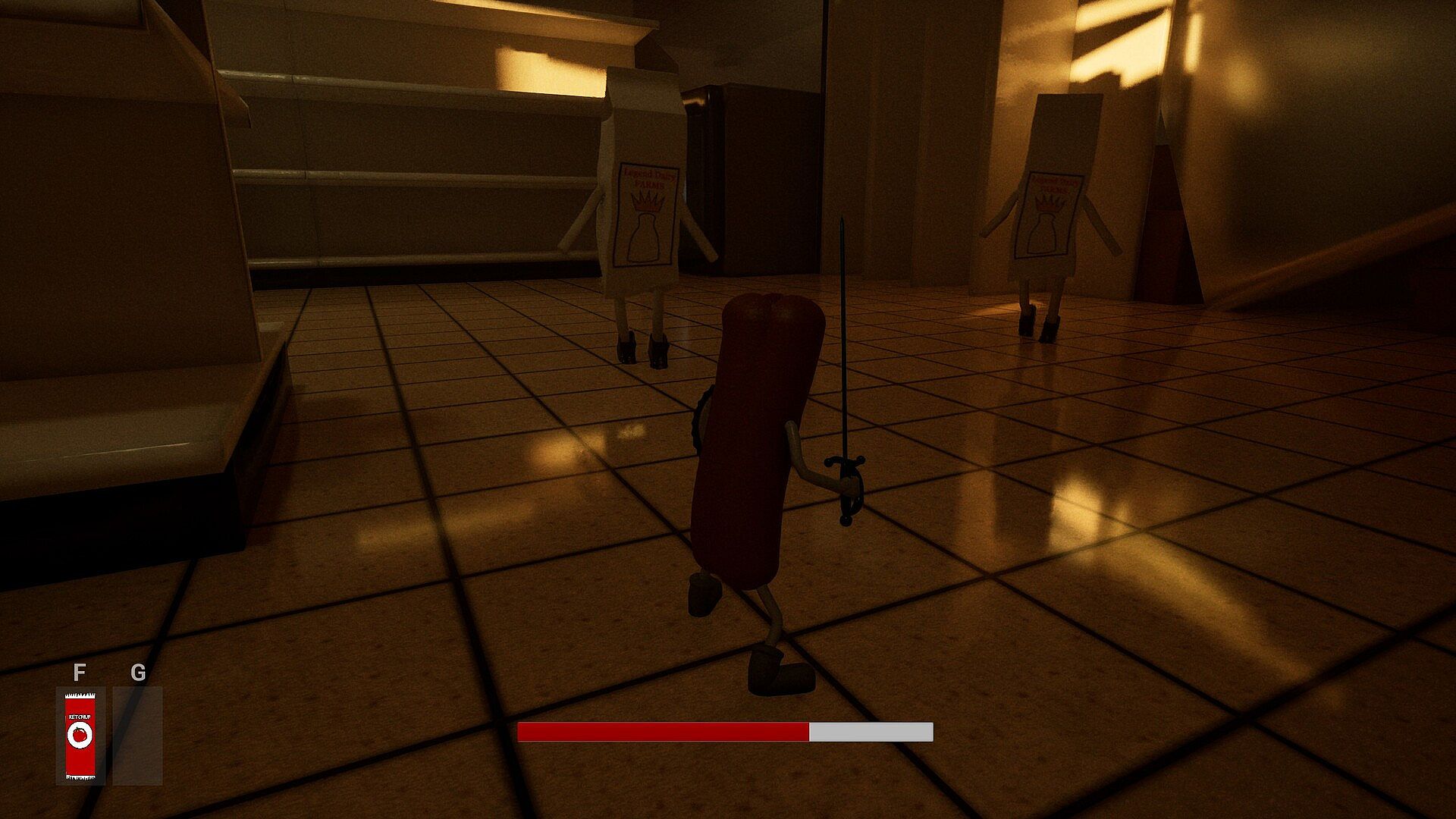 GlizzySouls is the first Quadruple G, Souls-Like, action adventure, RPG, Third-person, buzz word, open super market, game from Solo-Developer Mark W. You play as our titular hero, Glizzyman, as he fights his way through hordes of anthropomorphism food to escape a super marker. Oh also, he's a hotdog. Drive in for a fun adventure, full of trial and tribulation, easter eggs and actual eggs, glizzys and gats, ect. So pick up your sword and join the Early Access today! All this for the price of one "membership-based warehouse club" hotdog!
