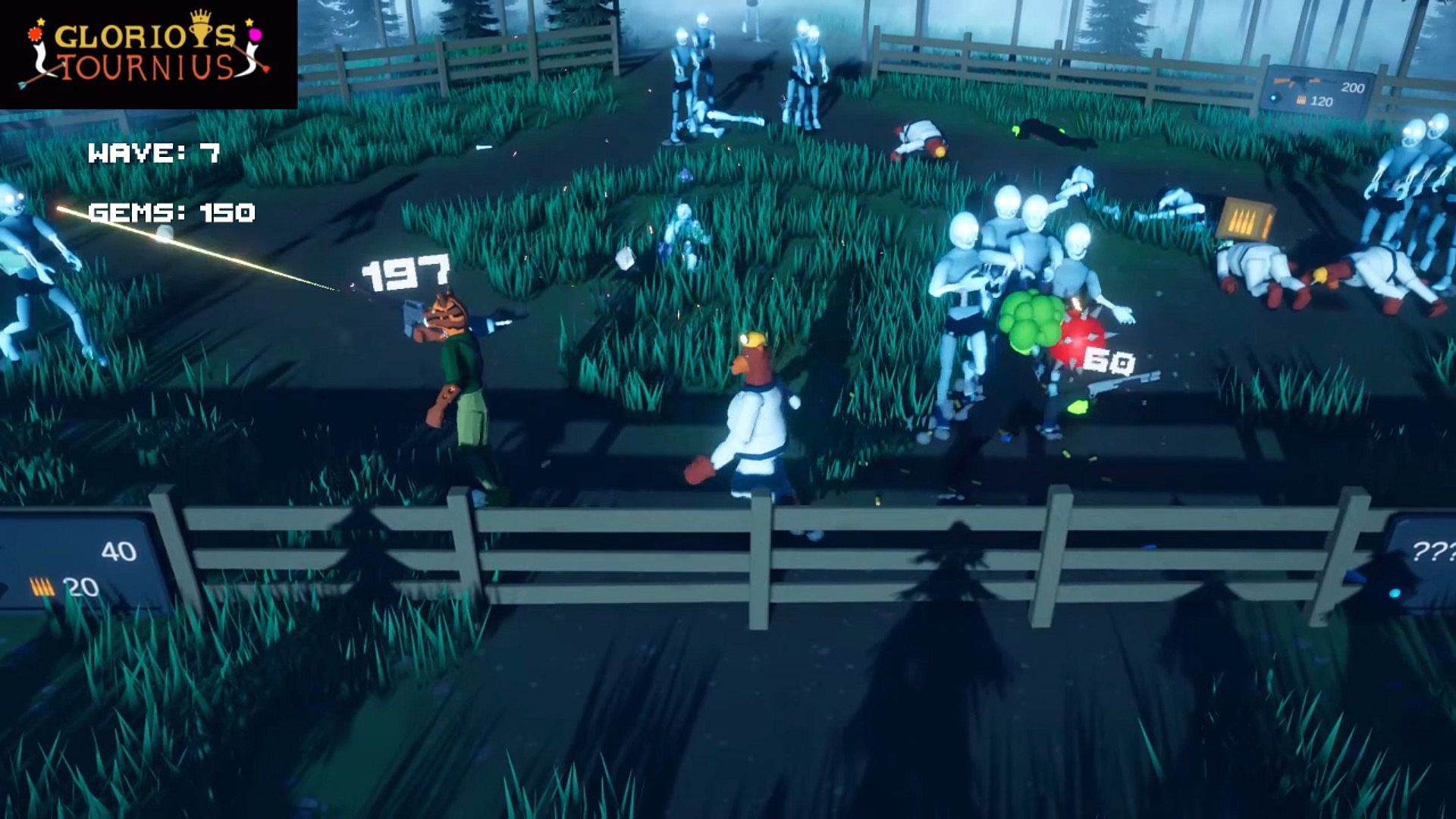 Glorious Tournius Mode 2-4 Players - Are you ready to fight in the Glorious Tournius? Experience active ragdoll, physics based mayhem in this local multiplayer game. Battle each other using bombs, guns, melee weapons and your fists.