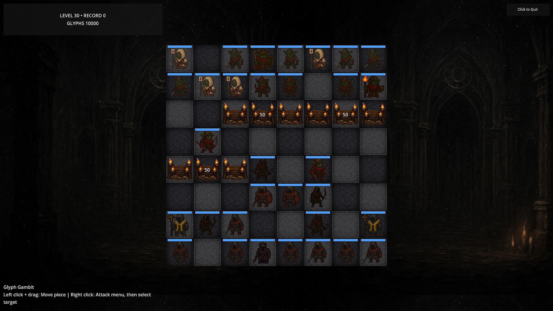 Glyph Gambit is a turn-based tactical roguelite inspired by chess, Dark Souls, and grid-based dungeon crawlers. Each run challenges you to navigate dangerous tactical arenas where every move matters and every decision can end your journey. Your objective is clear: