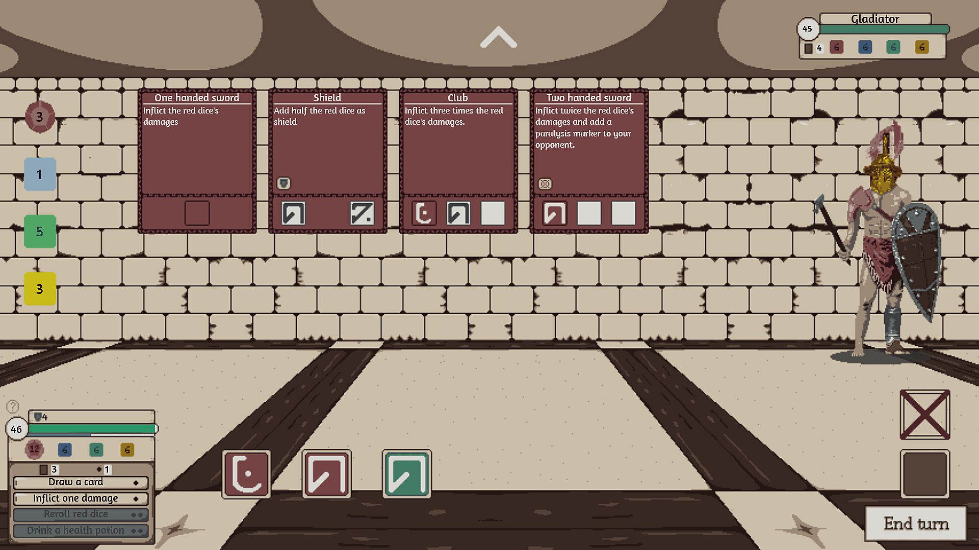 In Gnart's Escape, you will roam around a maze, seek treasures and secrets, optimize you deck and equipments, defeat powerful ennemies, and eventually ... find a way out.