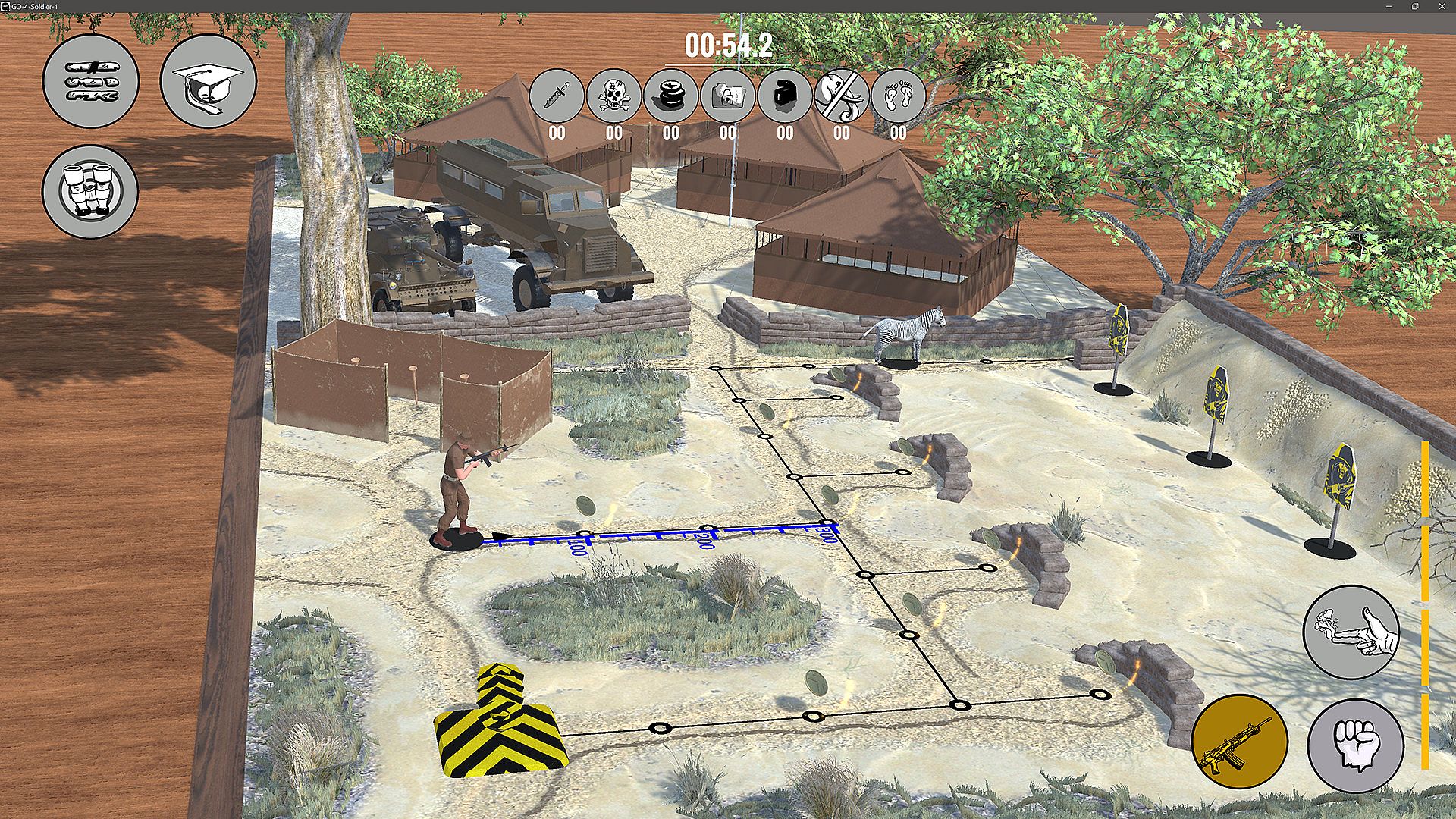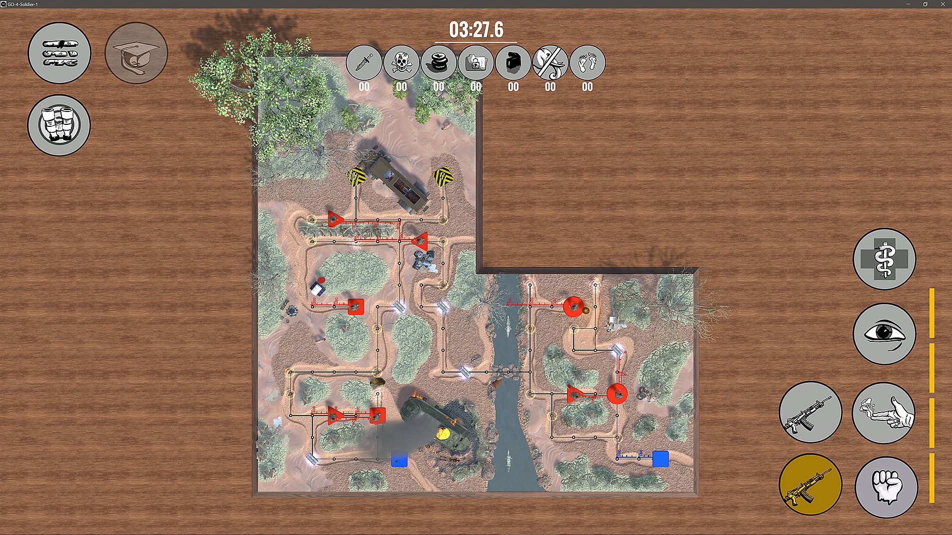 GO-4-Soldier-1 is a simple to play, hard to master turn-based strategy game set in the African bush. Fight your way through ten beautifully handcrafted levels, while strategically navigating fixed spaces on a grid to combat enemies and avoid dangerous animals. This visually stunning turn-based strategy game focuses on forward-thinking to make your way through progressively challenging levels. "A challenge for even the most accomplished generals."