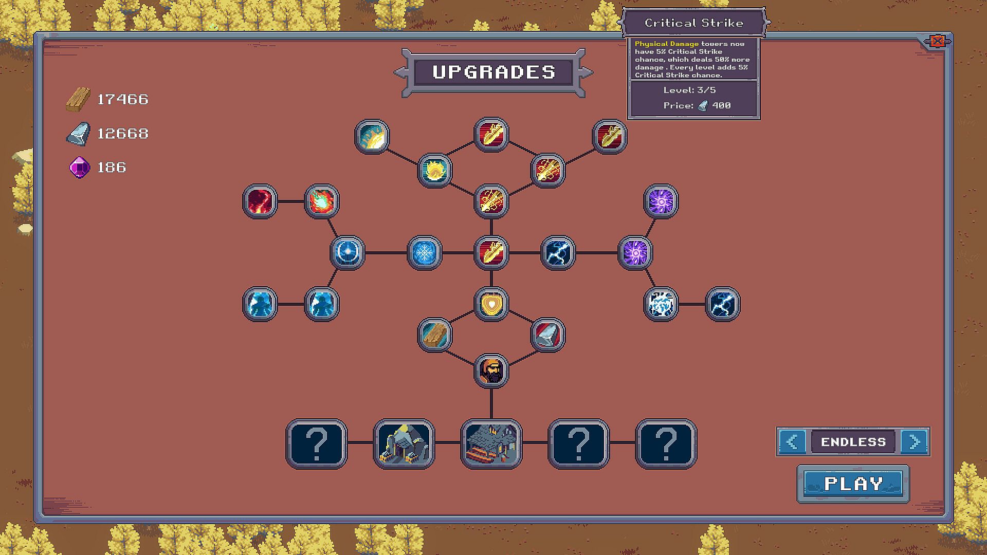 Start with basic archer towers, as you crush goblin hordes, gather valuable materials to research unique upgrades that unlock new towers, abilities and resource production. Dive deep into a massive skill tree filled with branching paths and powerful synergies. The more you play, the more tools you’ll unlock to obliterate even the toughest enemies.