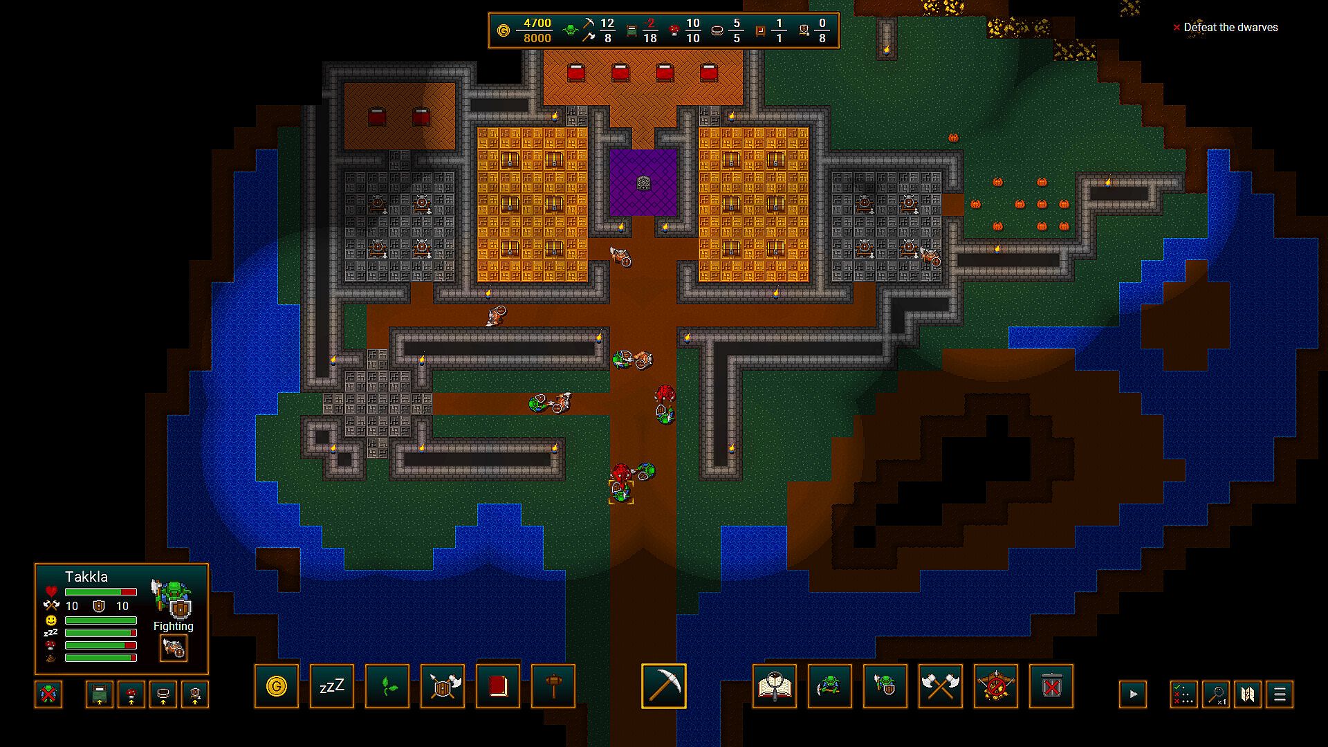 Supply your goblins according to their needs such as beds for sleep and food for hunger.