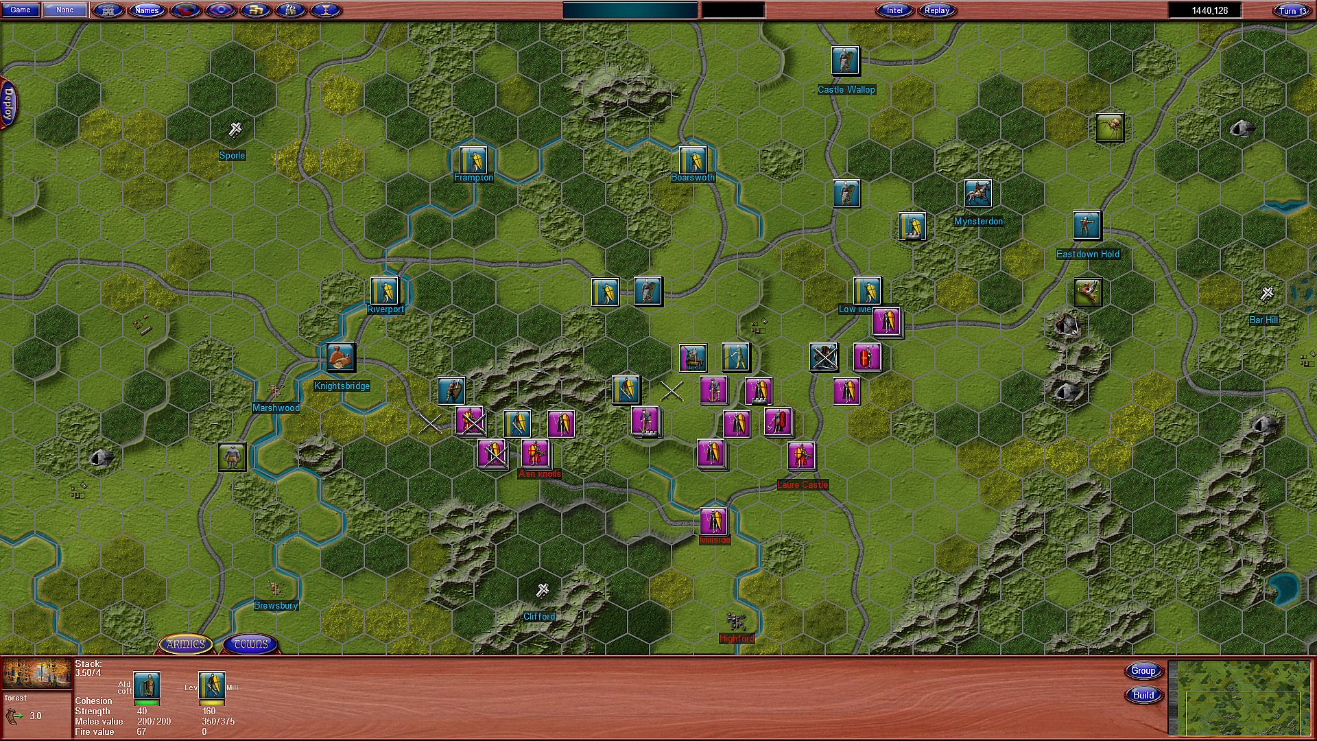 Goblin Storm (GS) is an operational strategy game that fills the void between grand strategy and battlefield tactics. Command the armies of Men, Goblins, and the Dead as they battle for supremacy on battlefields across the lands of Arcwellion. Scenarios in GS are fast paced and self-contained; gameplay begins with the human defender building their kingdom and then attacking Goblins or Undead plan their invasion. The average scenario lasts 2-3 hours and is a great choice for gamers craving the detail of a simulation but the fast pace of fantasy strategy. Will you build a mighty kingdom and lead the armies of men to stand against the storm or will you command the invading hordes in their quest for wealth and glory?
