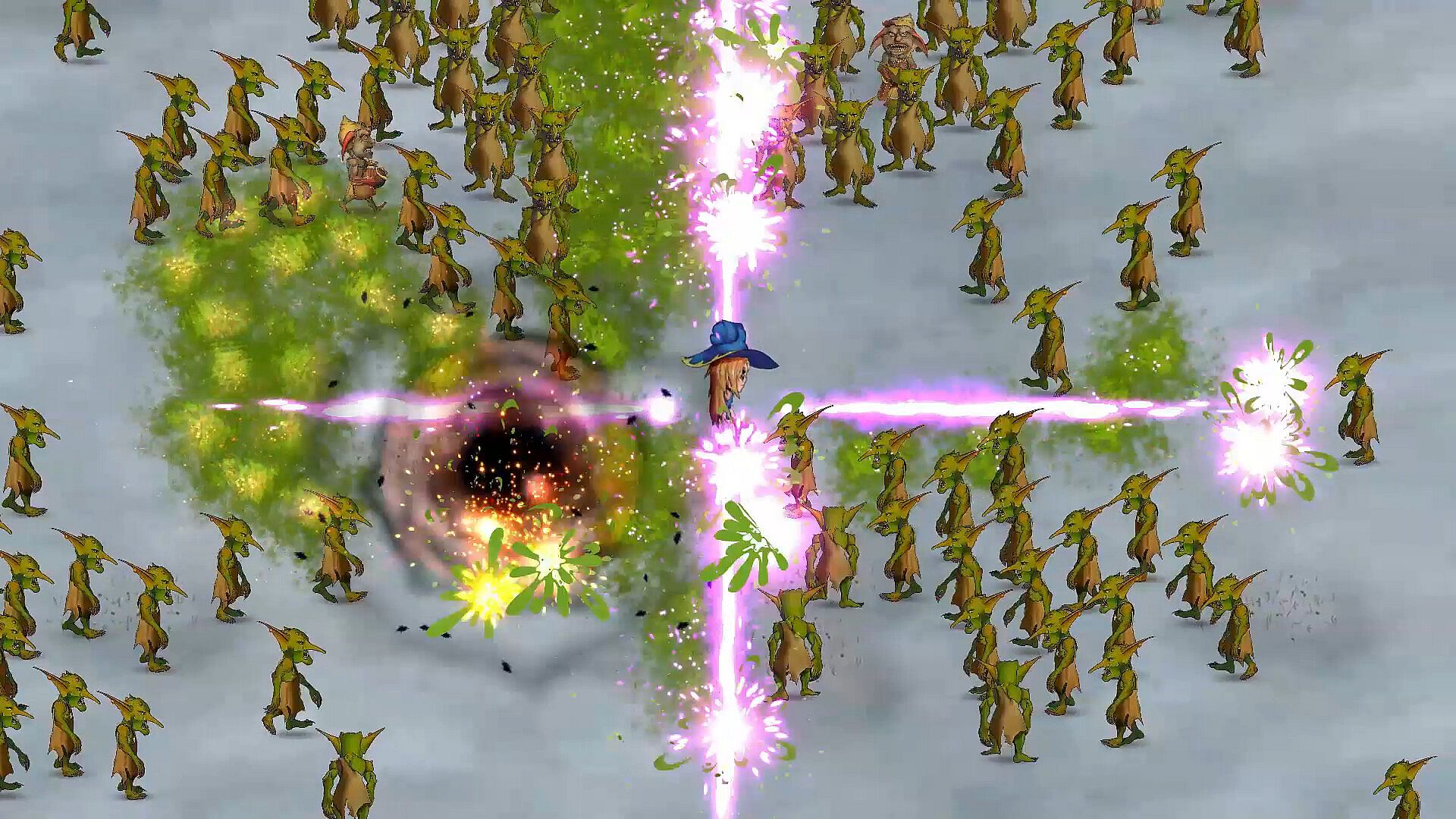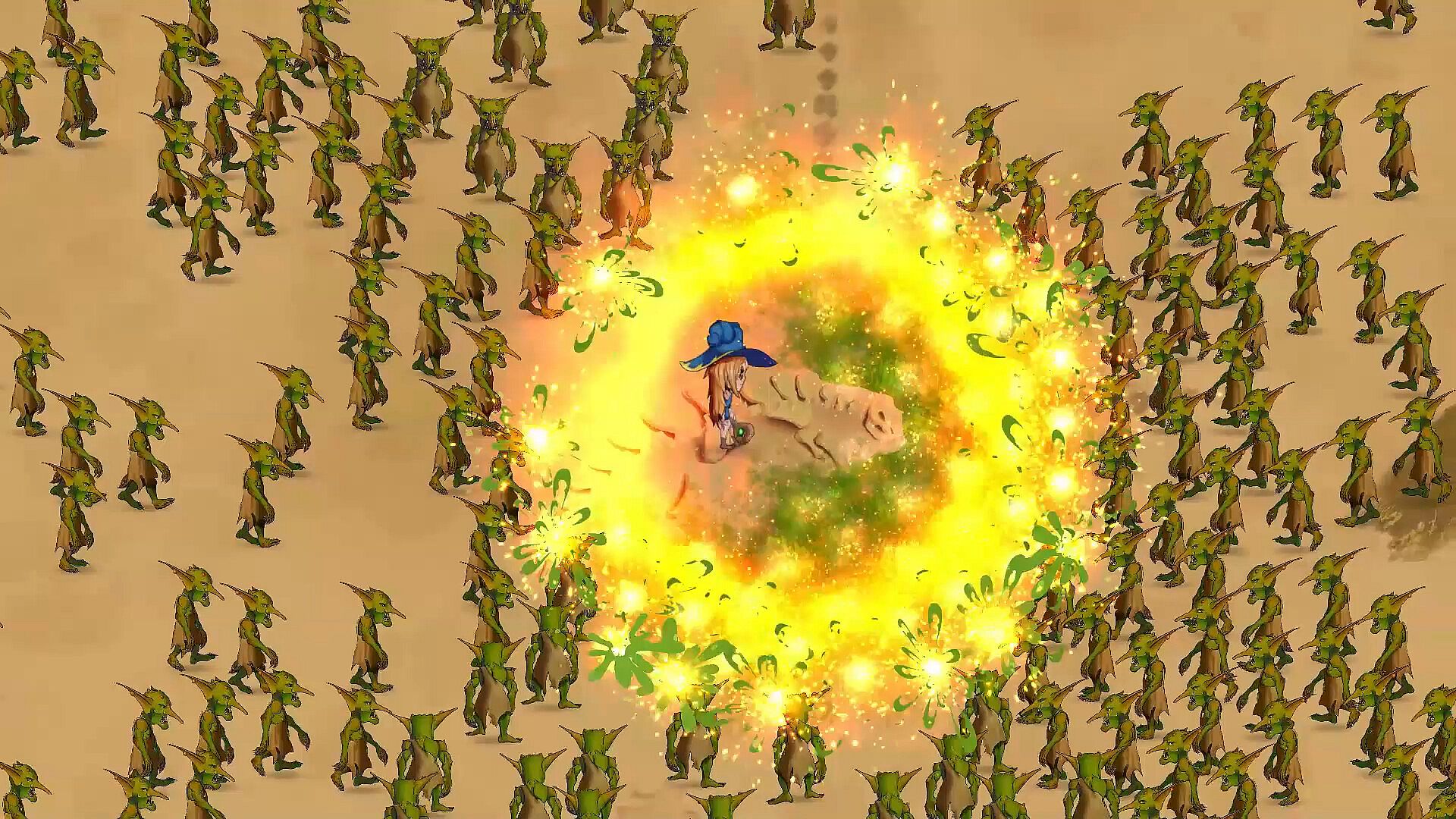 You have to play as a hikikomori girl who dies in an accident and comes to life in a new world in the guise of a magician. The new world is suffering from the invasion of goblins, led by the "Pale King". To return to your world you need to stop the invasion and kill the goblin king. The local goddess keeps you from dying on the battlefield and brings you back again and again saving your leveling progress as you must save her beloved world at all costs!