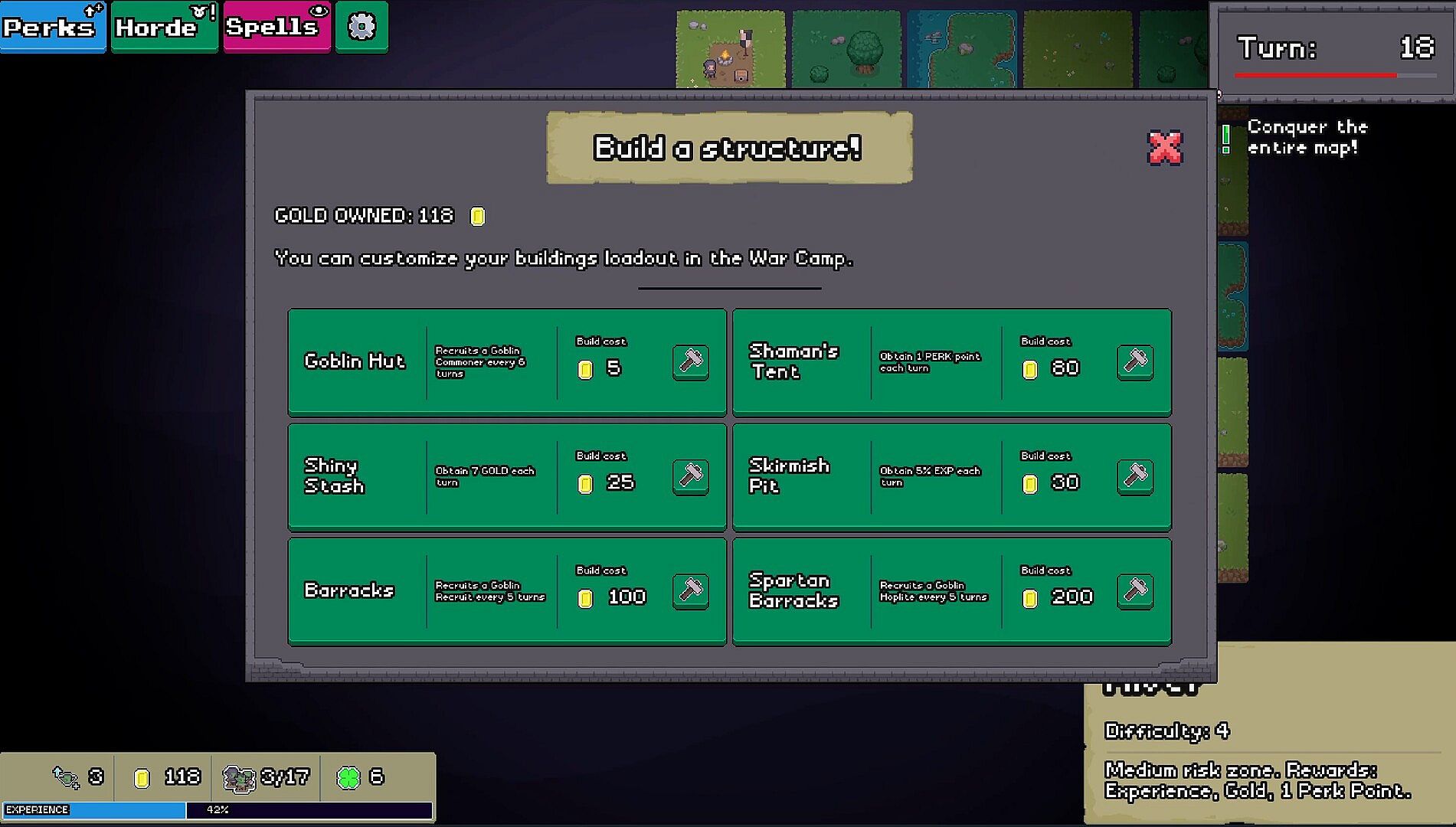 Gather Spoils to upgrade the permanent War Camp. Unlock new goblin classes and customize your building loadout to improve future runs.