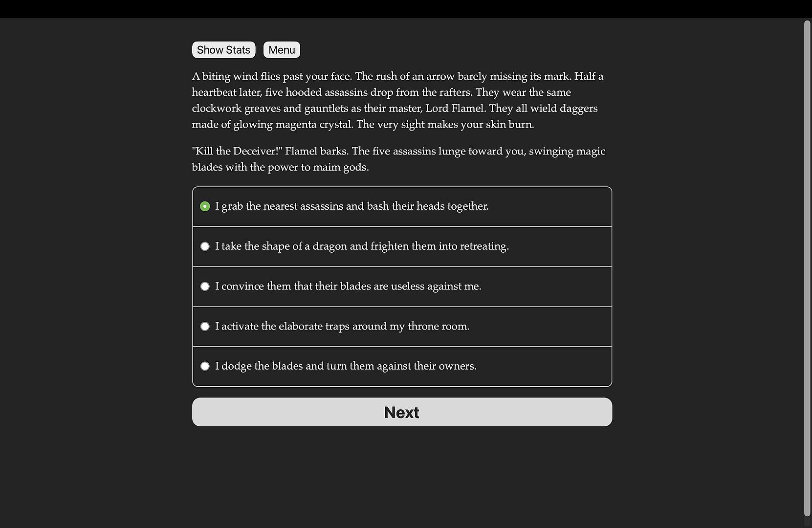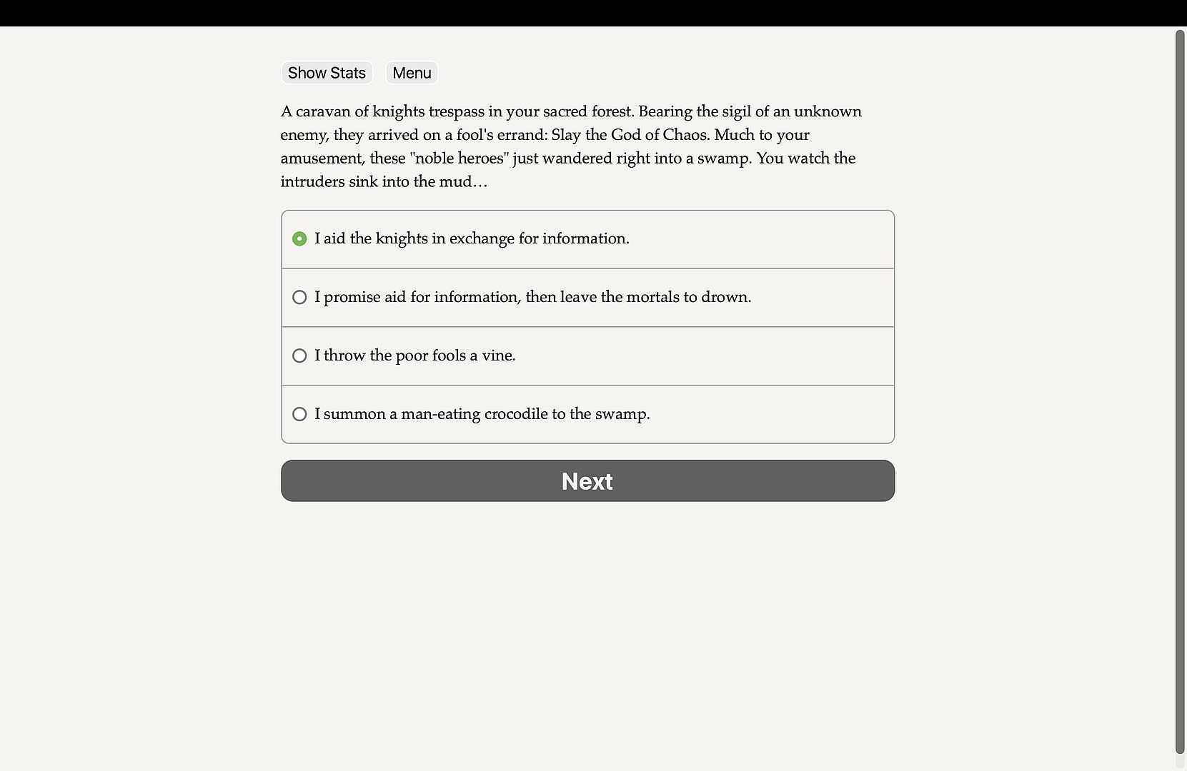 God of Chaos is an interactive dark fantasy novel by Brennan Gilpatrick. It is entirely text-based, 250,000 words and hundreds of choices, without graphics or sound effects, and fueled by the vast, unstoppable power of your imagination.