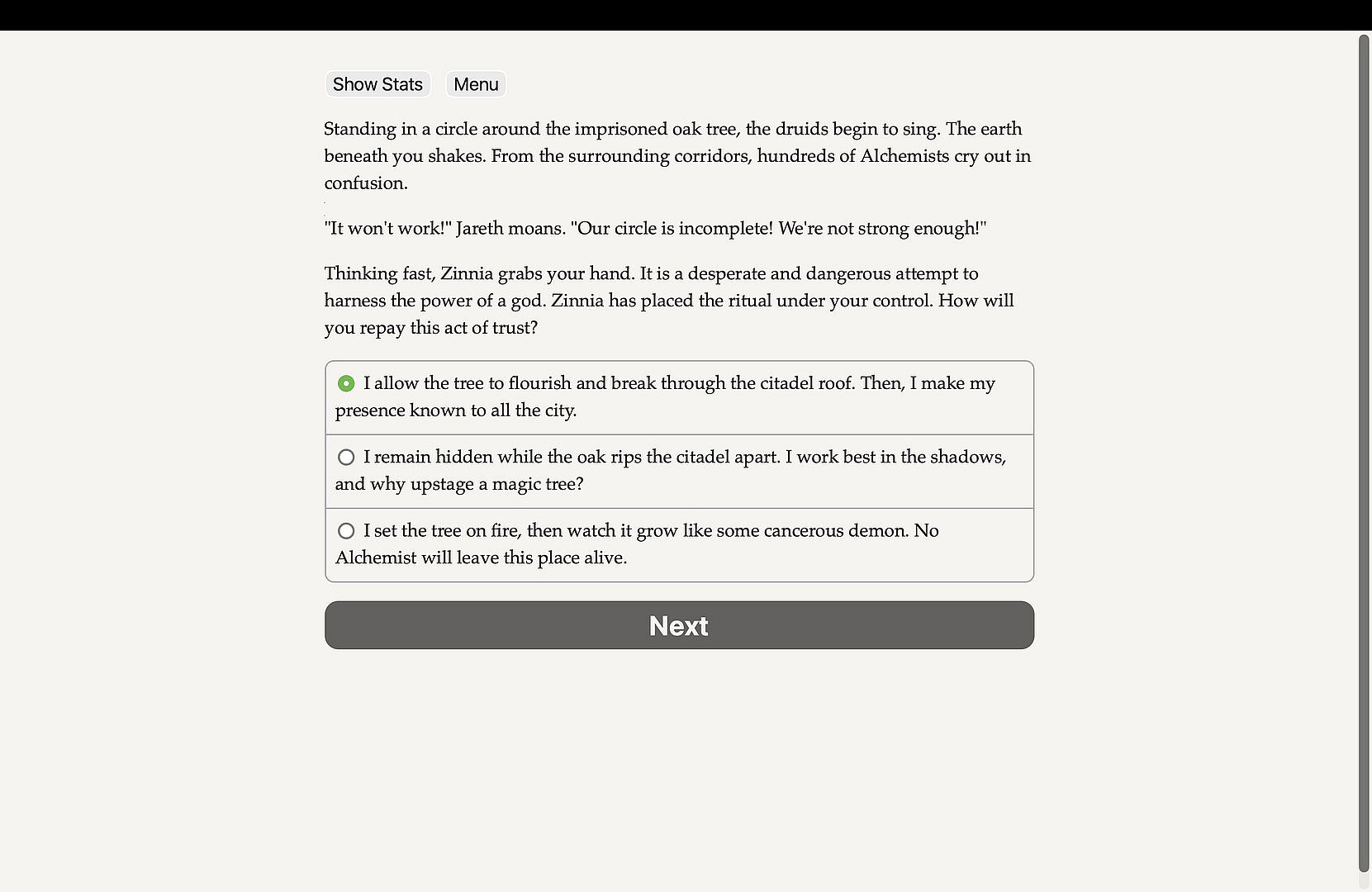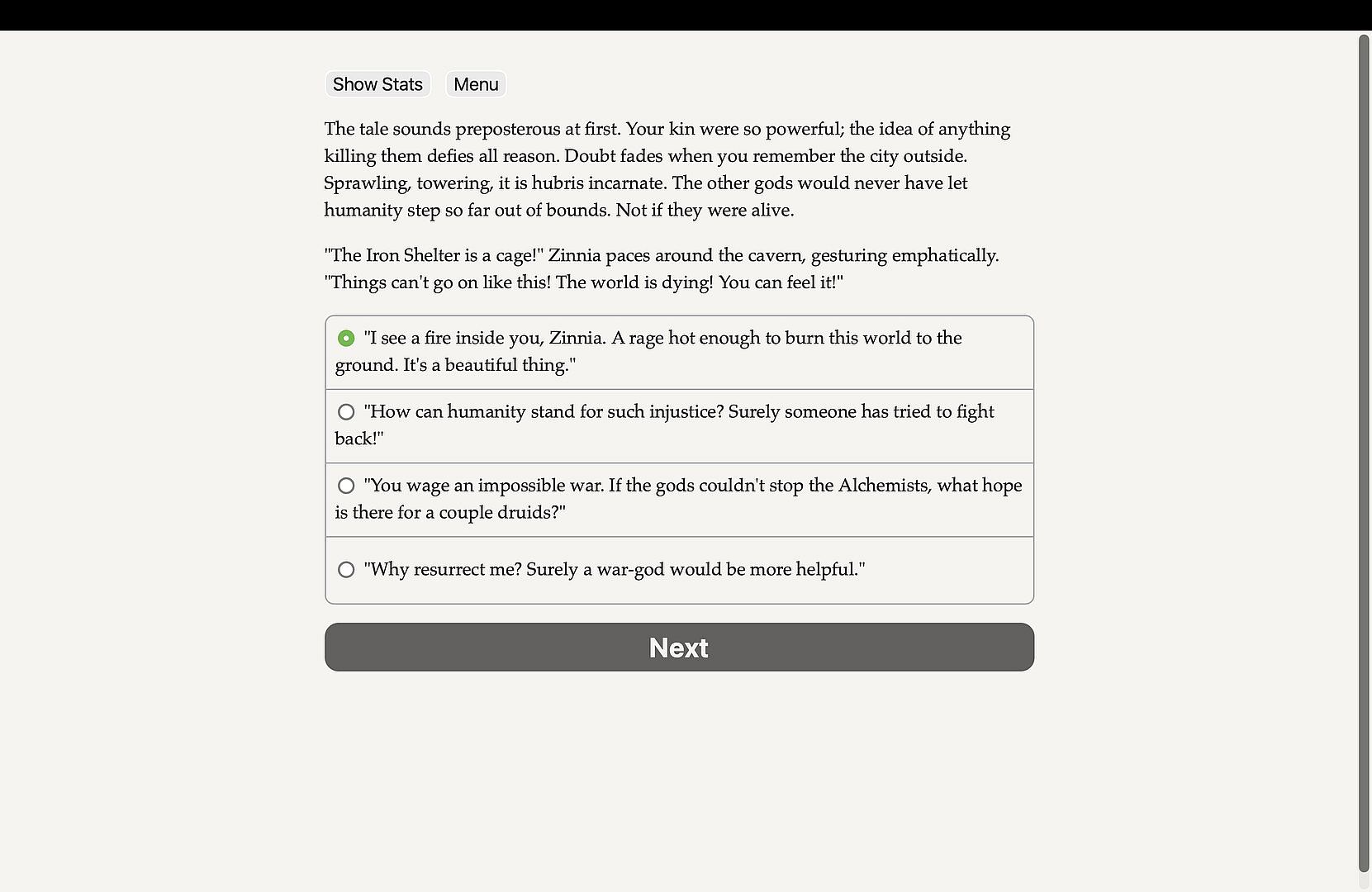 Take command of the machine that rules the Iron Shelter, dismantle it safely, or sabotage it to plunge civilization into madness.