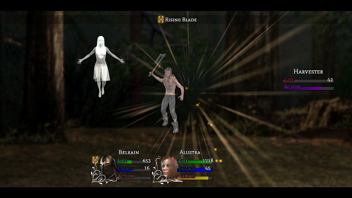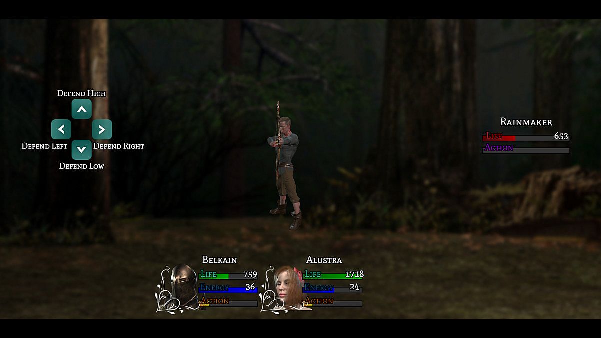 • Turn based combat that utilises QTE and 4 directional input to chain combination attacks and defence mechanics.