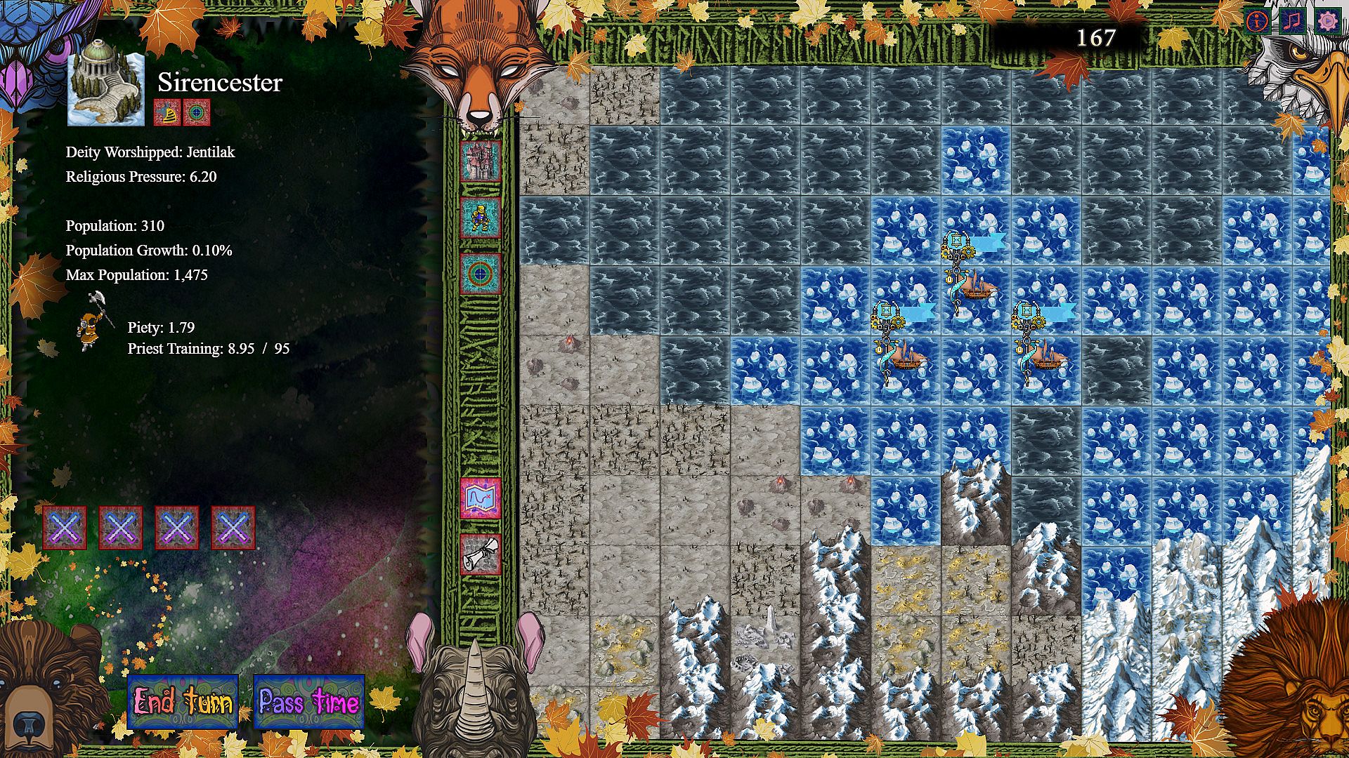 Unfortunately for your people, you are not the only god. Play against a difficult AI which has all of your powers and perhaps, even less scruples!