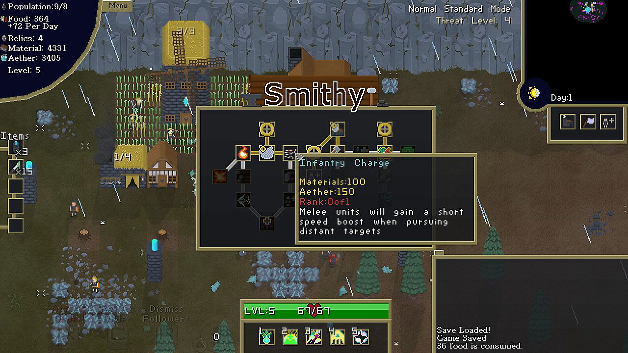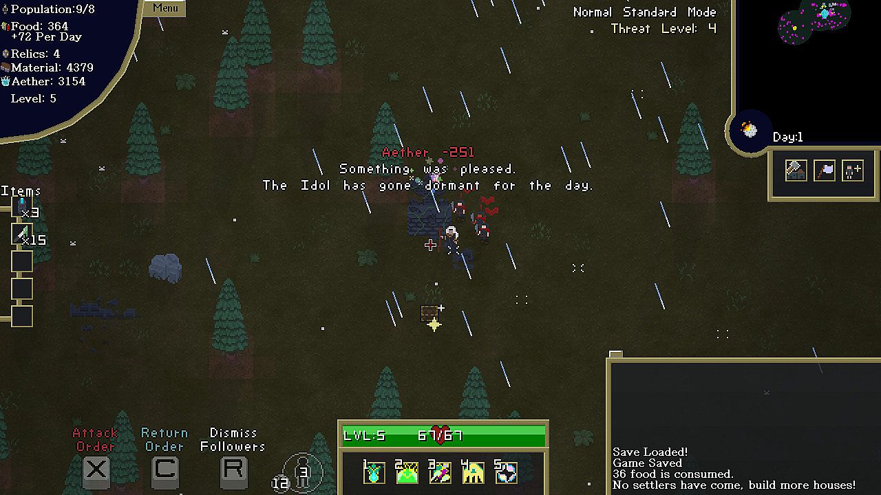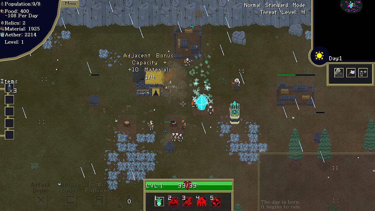 Take on the role of a leader trying to rebuild humanity in a broken and dangerous world. The area layout changes with each play through and your villagers are randomly generated, with their own names, appearances, and traits. Build your defenses and keep your followers safe through the night, while collecting and managing your resources during the day to face the ever growing threats. Lead your followers into battle and make strategic decisions on what to develop and build to survive.