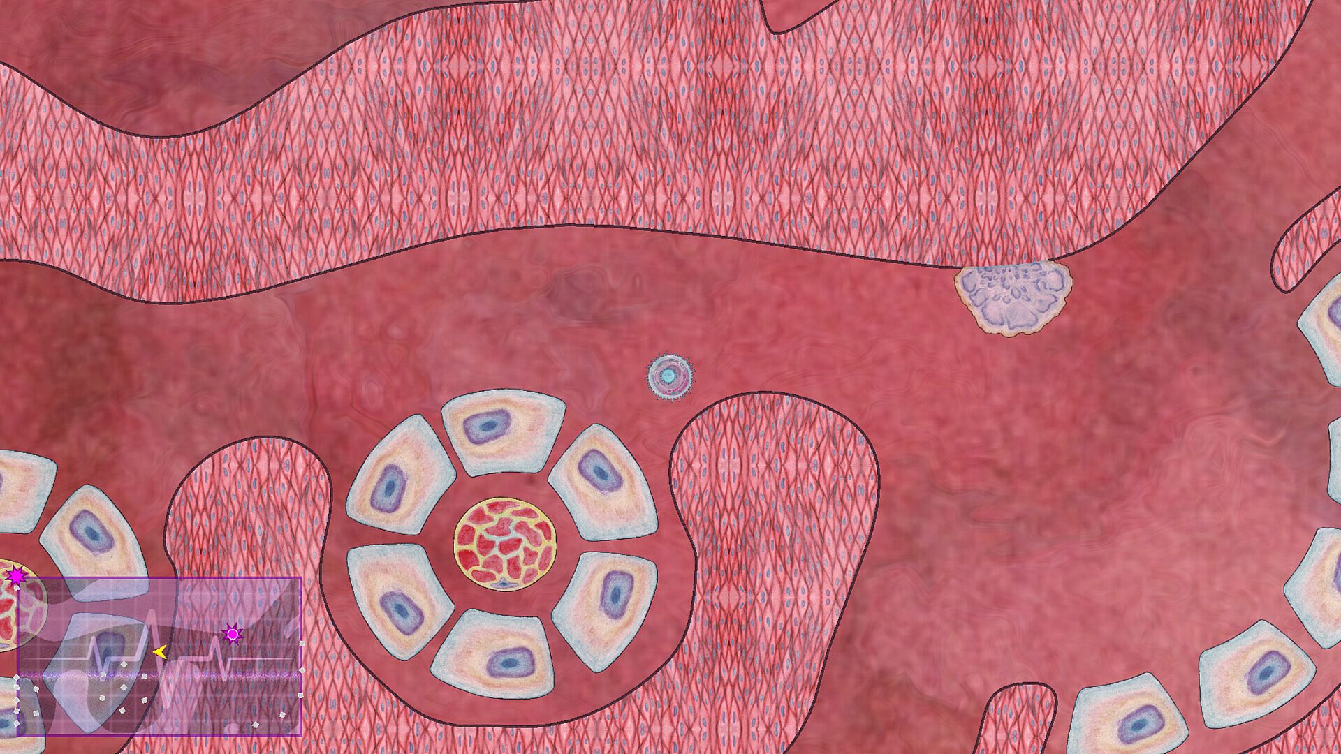 Utilising squishy softbody physics and hand-drawn graphics, this game will take you on a journey through the body. As you clean up infections, you gather more knowledge about your pathogenic enemies, building an encyclopedia of knowledge. As you obtain more mito, you grow stronger, better able to take on the legions of viruses and bacteria that lie ahead.