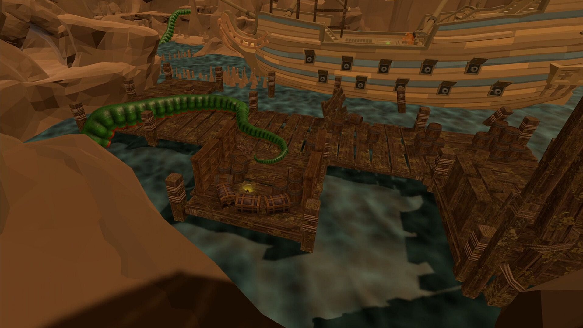Gold and Glory is a classic exploration game developed specifically for VR. Explore a tidal cave! Discover the treasures of a derelict pirate ship! Fight off the peculiar creatures that dwell in this strange and magical place! Navigate the perils of the place using VR motion controllers. Climb around and explore inside this mysterious world, and seize your gold and glory!