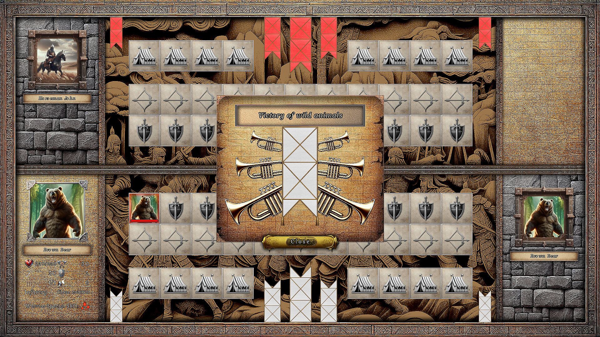 Roll dice on the tavern board or let your warriors rest to become stronger.