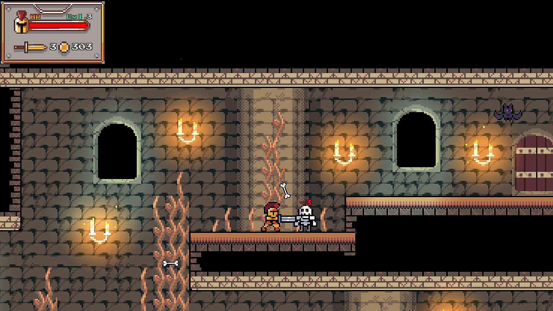 In Golden Knight, you embark on an epic journey to defeat the forces of darkness that have taken over the kingdom of Valerond. As the legendary hero Golden Knight, a defender of endangered kingdoms, you were caught off guard by the encroaching darkness while traveling through the region. Determined to save the kingdom, you venture through mysterious forests and treacherous castles, facing hordes of enemies and deadly challenges. This mini metroidvania RPG platformer offers an immersive experience where exploration, combat, and progression are key to victory. With high-quality 2D pixel art graphics, each environment and enemy comes to life in stunning detail as you explore the world and seek a way to restore peace. -Exploration and Action: Travel through dark forests and sinister castles, facing unique challenges as you explore to find treasures and essential resources for your journey. -Upgrades and Progression: Collect coins, discover campsites, and improve your abilities, such as attack and health, to become stronger as you advance. Prepare to face increasingly powerful enemies. -Dynamic Combat: Unleash your combat power with your sword, jump to avoid enemies or traps, and use your dash to dodge or hit enemies at long range. -Challenging Enemies and Bosses: Encounter a variety of enemies like slimes, skeletons, zombies, and bats. Get ready to confront terrifying bosses, including the Demon Bat, a giant evil eye, and the powerful Dark Mage. -Deadly Traps: Beware of traps scattered along the way, such as spikes, darts, and scythes, which require skill and precision to overcome. -Immersive Music: The soundtrack, inspired by classic medieval music, creates an epic and immersive atmosphere, enhancing the gameplay experience. -Linear and Focused Gameplay: Complete levels, defeat bosses, and progress through the world of Valerond to restore peace and defeat the forces of evil. -Single-Player Mode: An intense, player-focused experience, ideal for those who love action and exploration challenges. If you're ready to embark on an epic journey of action, exploration, and heroism, then Golden Knight is the game you've been waiting for. Unleash the hero within, face the darkness, and restore the glory of the kingdom of Valerond!