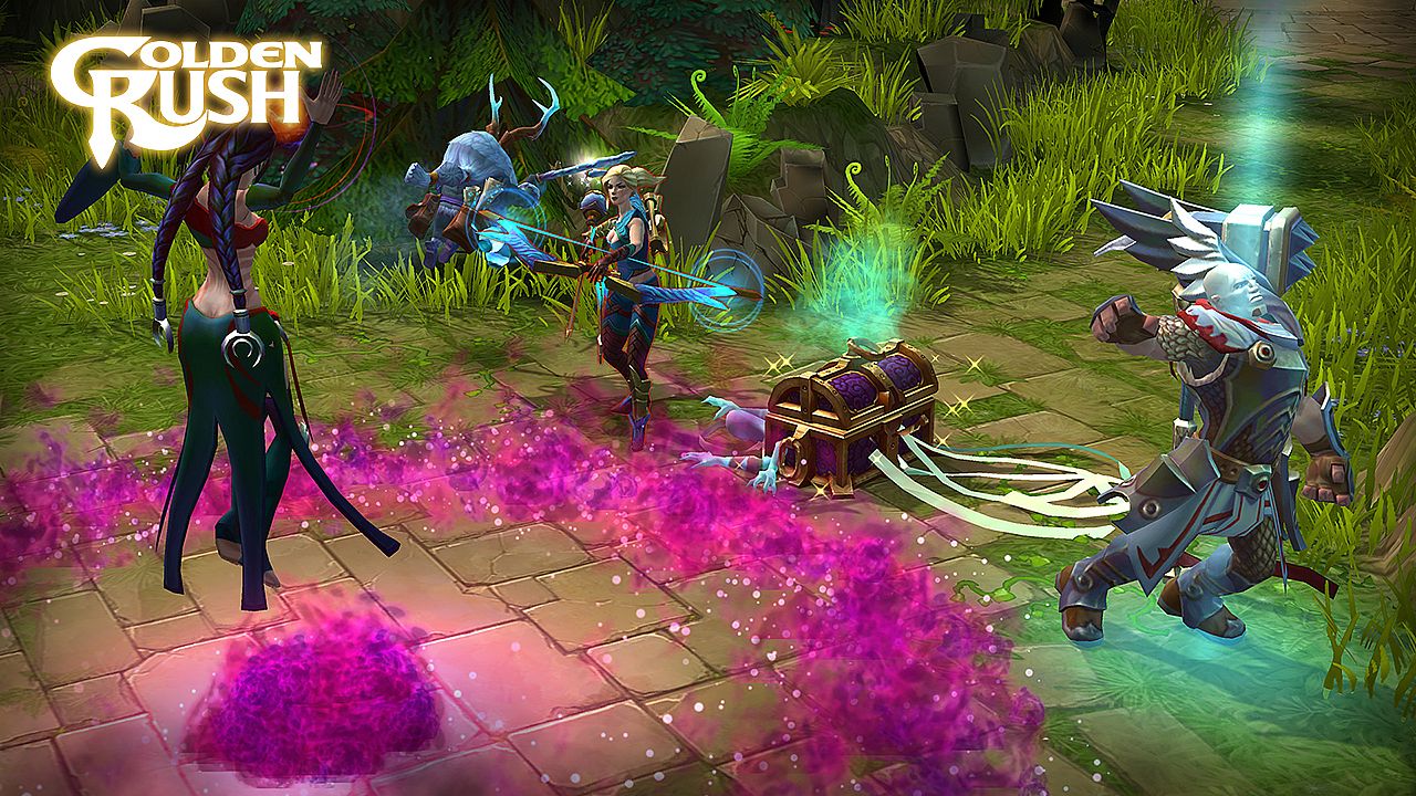 There are no lines or creeps and nexus here. Wealth is your only goal. You are to slay monsters and seize their chests with gold, become invisible, steal treasures from other teams, defend your own gold and triumph in the dynamic fantasy PvP. Four teams make the situation on the map unpredictable: victory, seemingly so close, may slip away in one second. Golden Rush is no place to relax – it's a treasure hunt you have to carry through!
