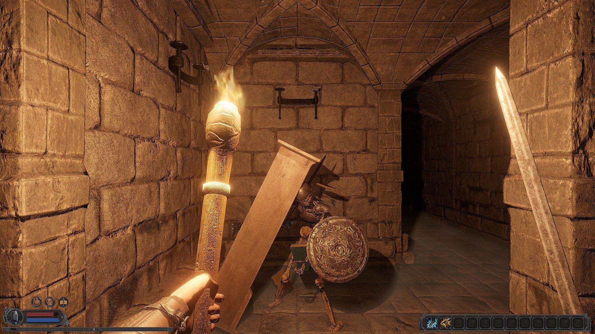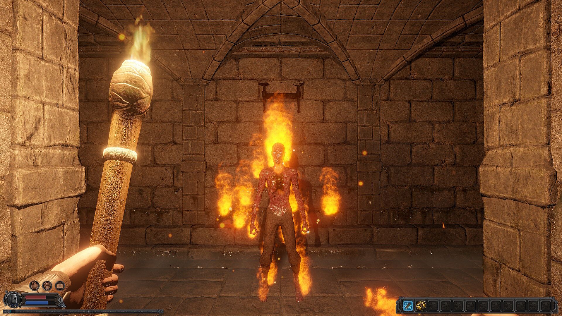 You might drop book shelves on a skeleton, kick a zombie into spikes, or flee through narrow passages in the hopes that the monster hunting you cannot follow.
