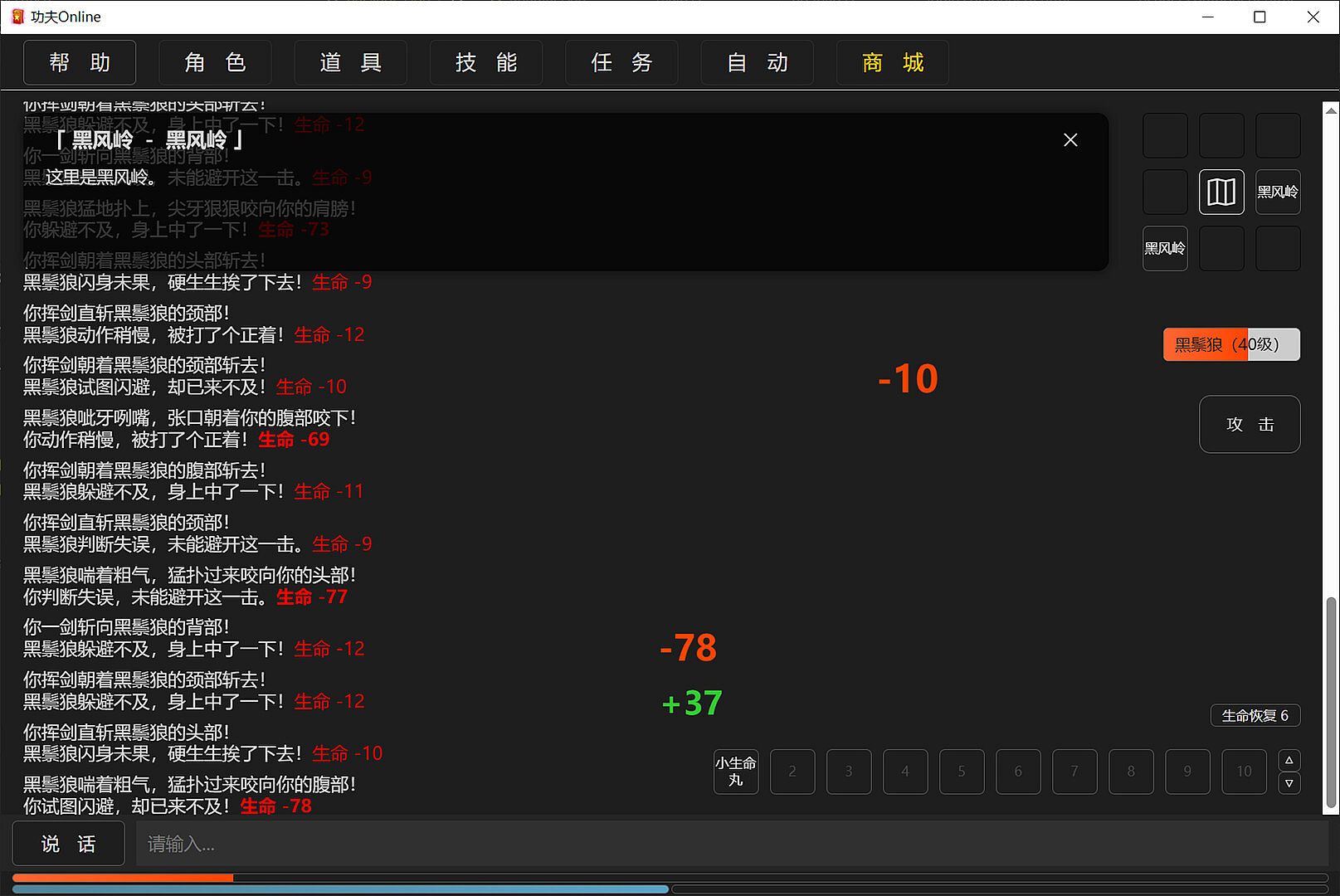 自动即时战斗,可设置自动使用血药,亦可手动极限操作。