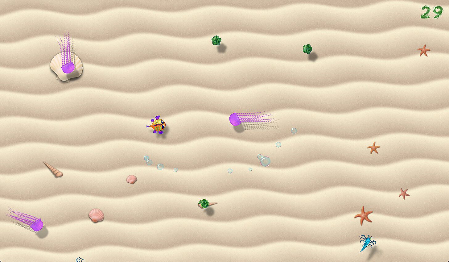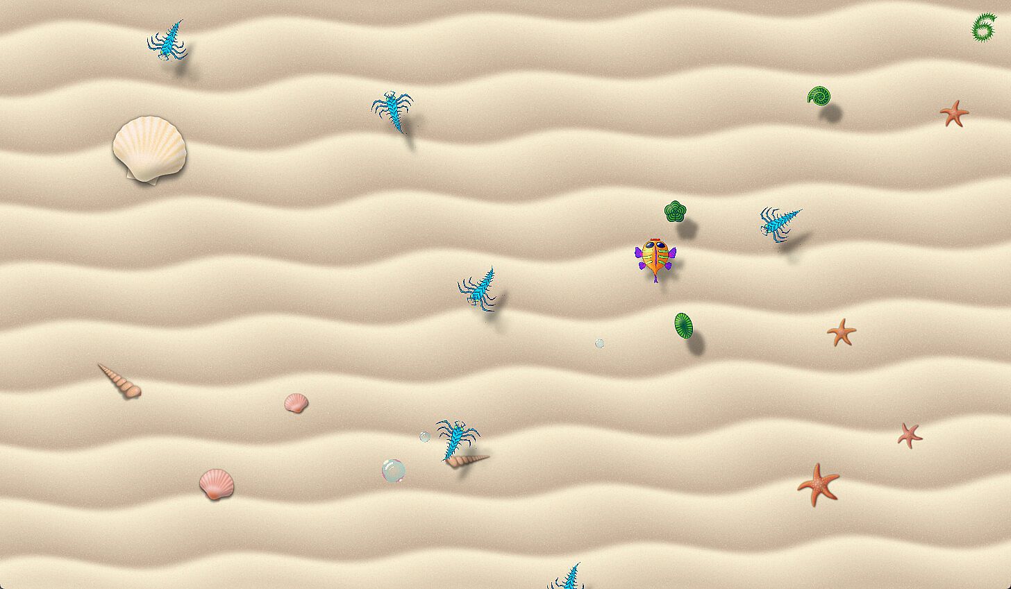Goppy is a cute little fish who loves eating his yummy green treats, but he needs help to avoid the nippy-creepy-crawlies.