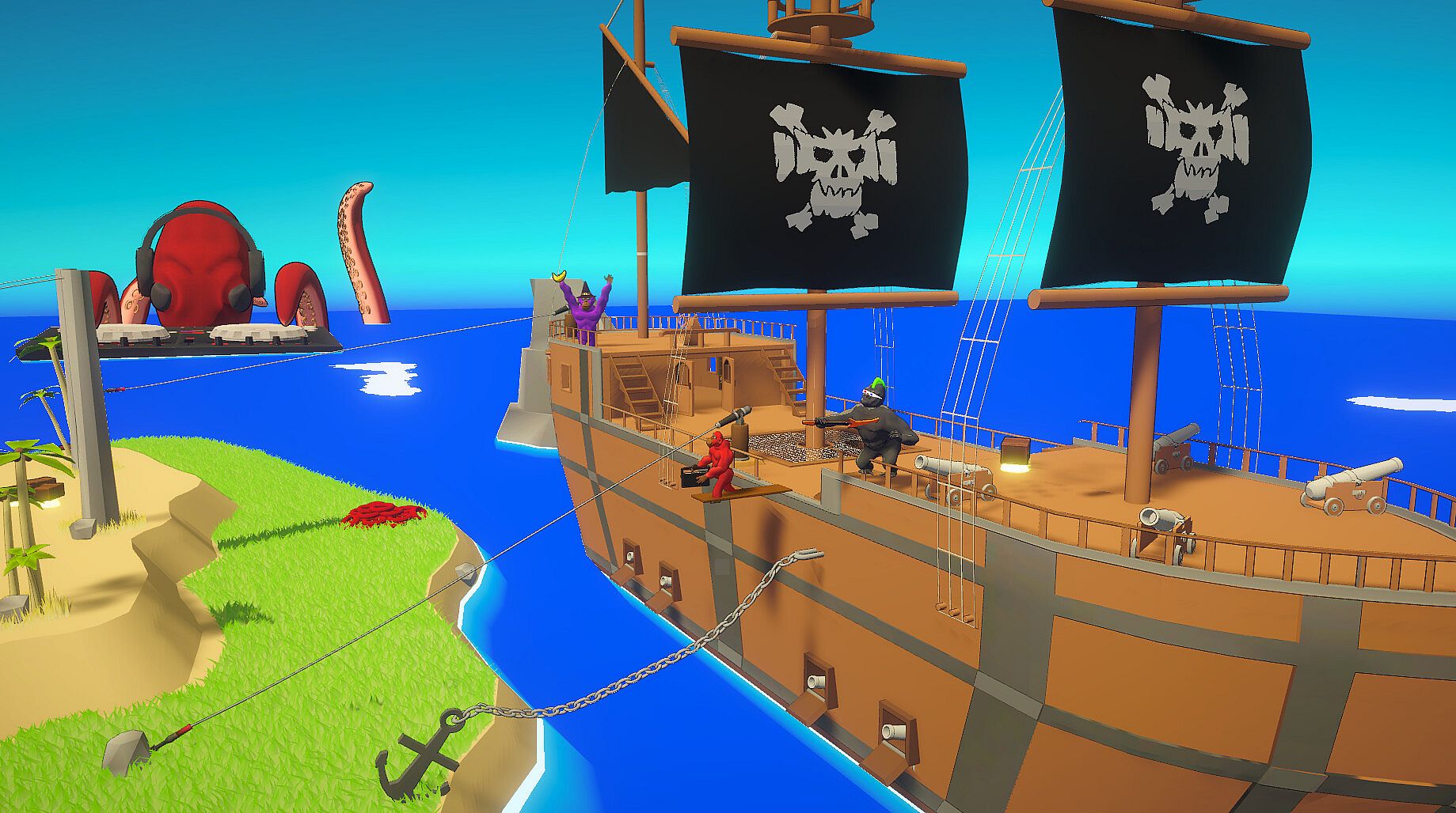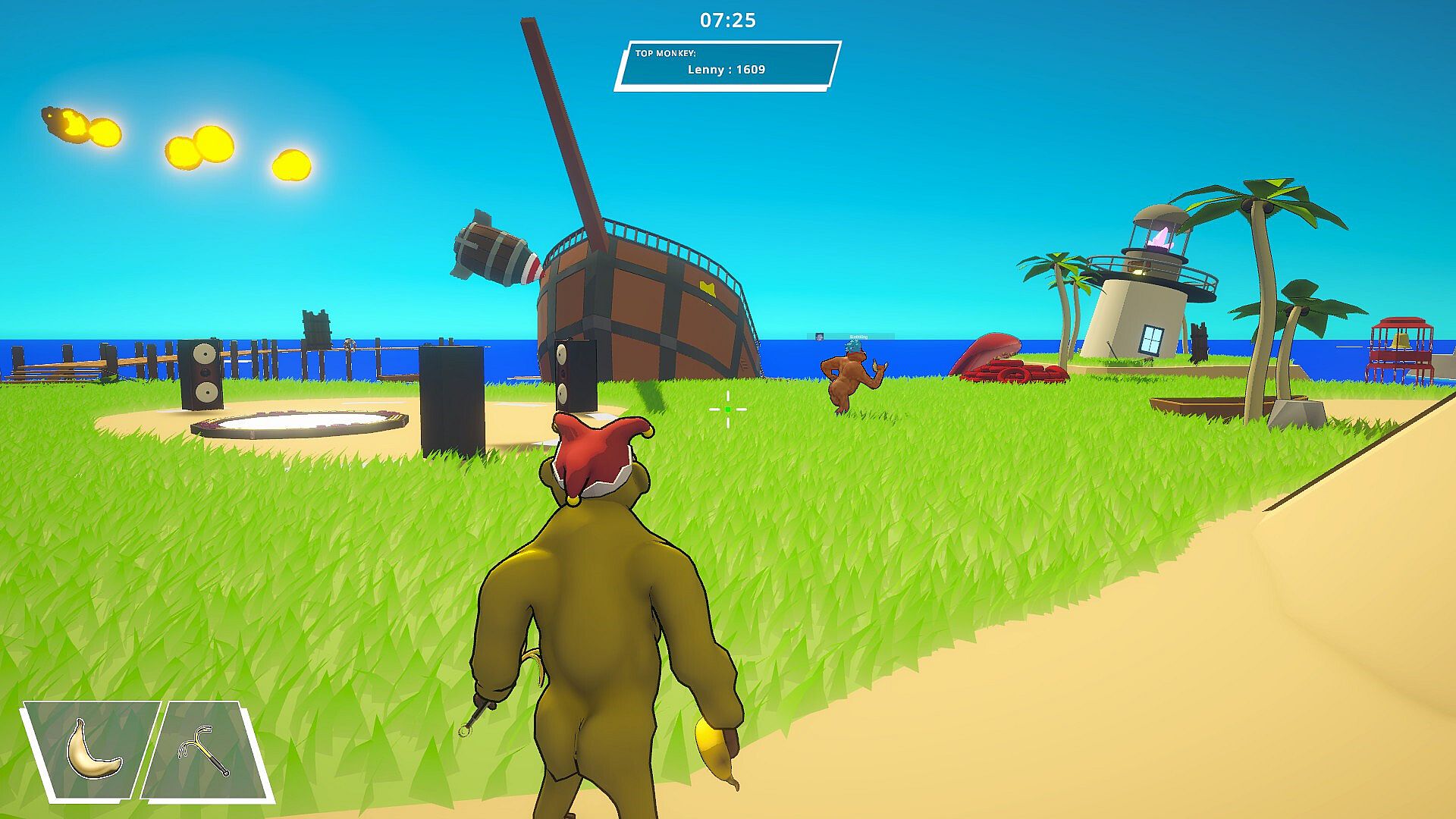 Join into a private lobby with friends or venture into public parties for worldwide fun! Voice chat keeps the energy loud and chaotic as you fight, fling bananas, and battle for the beat. Modes include: Free-For-All, Teams, Infected, Payload, Banana Grab, Ape Arsenal.