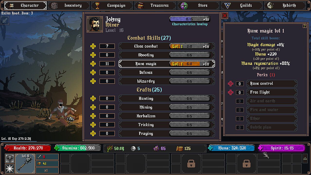 Upgrade weapons with minerals, brew potions, wear rings, armour and amulets. You can wear 10 rings at a time, and you can combine them to become Rings of Power.