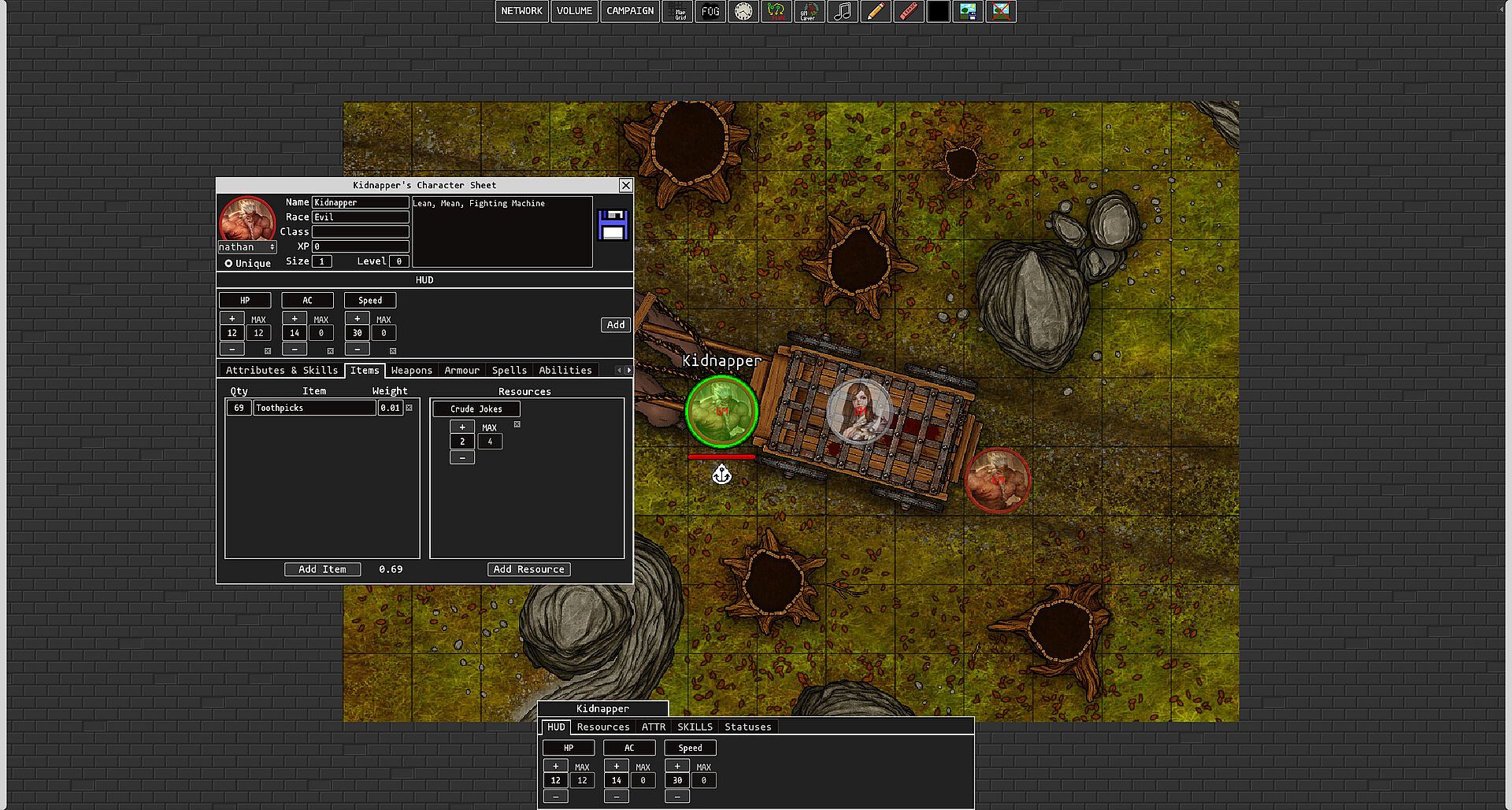 • Support for user-defined variables, which can include mathematical equations and/or any value on a token's character sheet.