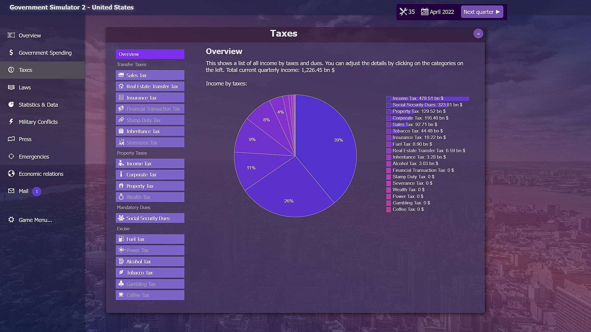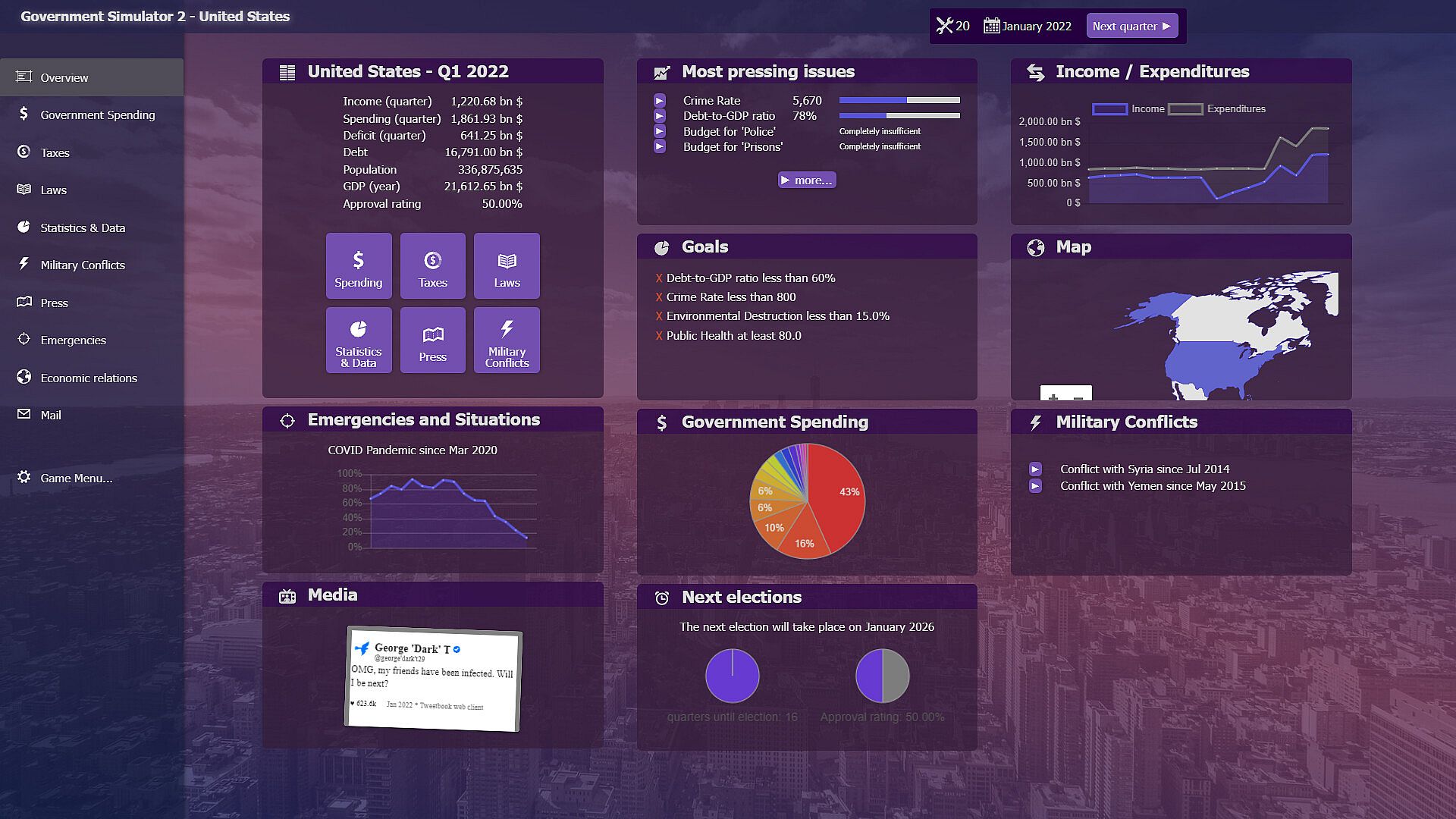 Emergencies add layers of challenge, with events like pandemics, earthquakes, or power outages requiring quick responses. You can also engage in economic diplomacy by negotiating trade agreements or setting tariffs with other countries. Military decisions let you initiate conflicts, manage operations, and even consider nuclear options for certain nations, though you must keep things under control to avoid escalation.