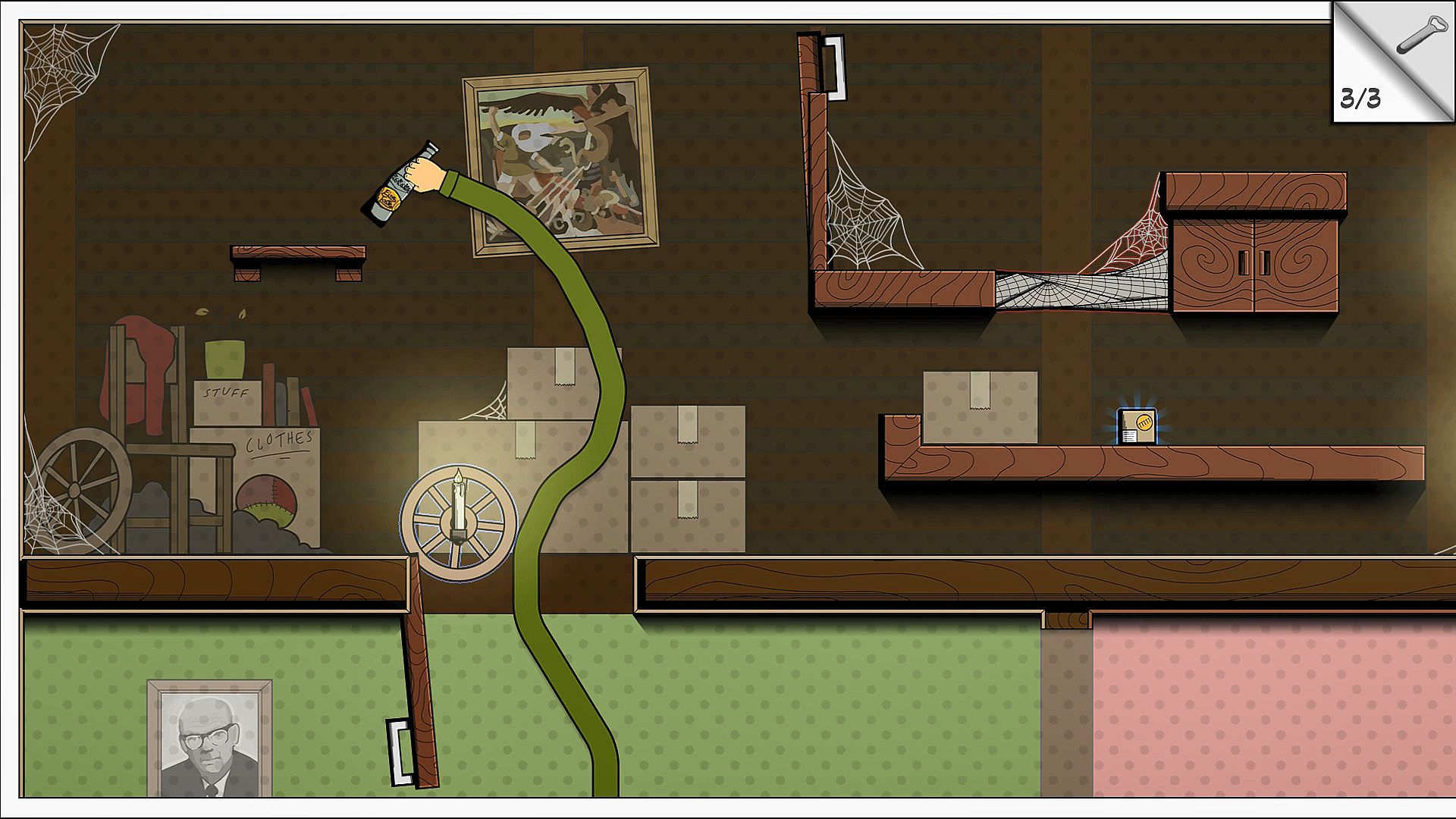 Grab the Bottle is a quirky puzzle game in which you solve puzzles by stretching your arm through the level.