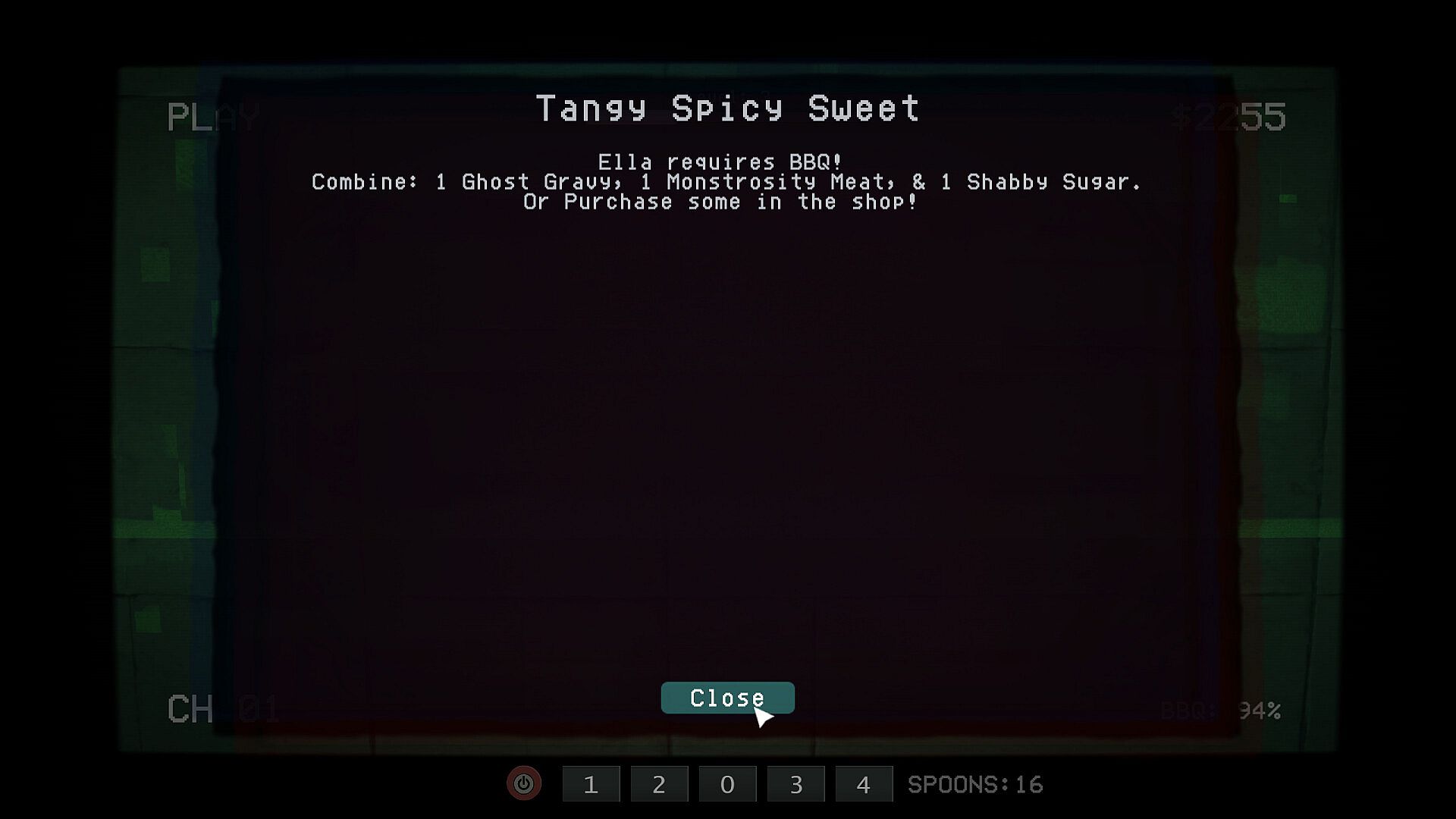 Something’s wrong with the video tape... Combining ingredients may lead to corrupted visuals, distorted sound, or chaotic gameplay changes.