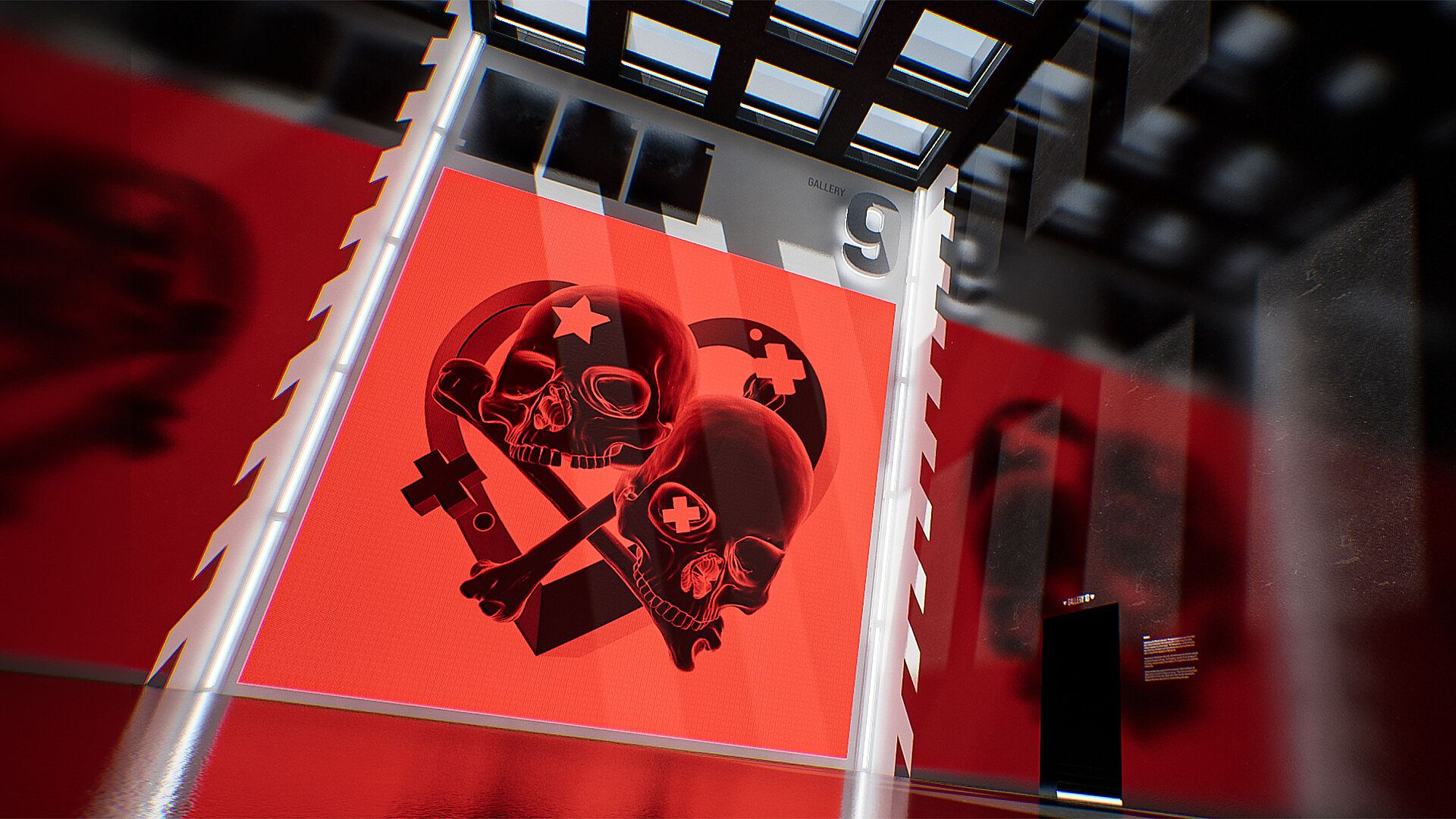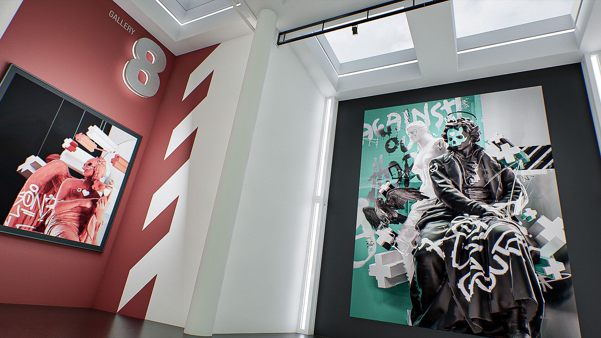 The gallery offers 11 freely explorable spaces in 1st person, allowing visitors to navigate through a collection of digital paintings, limited-edition skate deck designs, and a small number of 3D sculptures. Each piece is carefully selected to reflect a blend of traditional and contemporary influences, offering a unique take on various forms and materials.