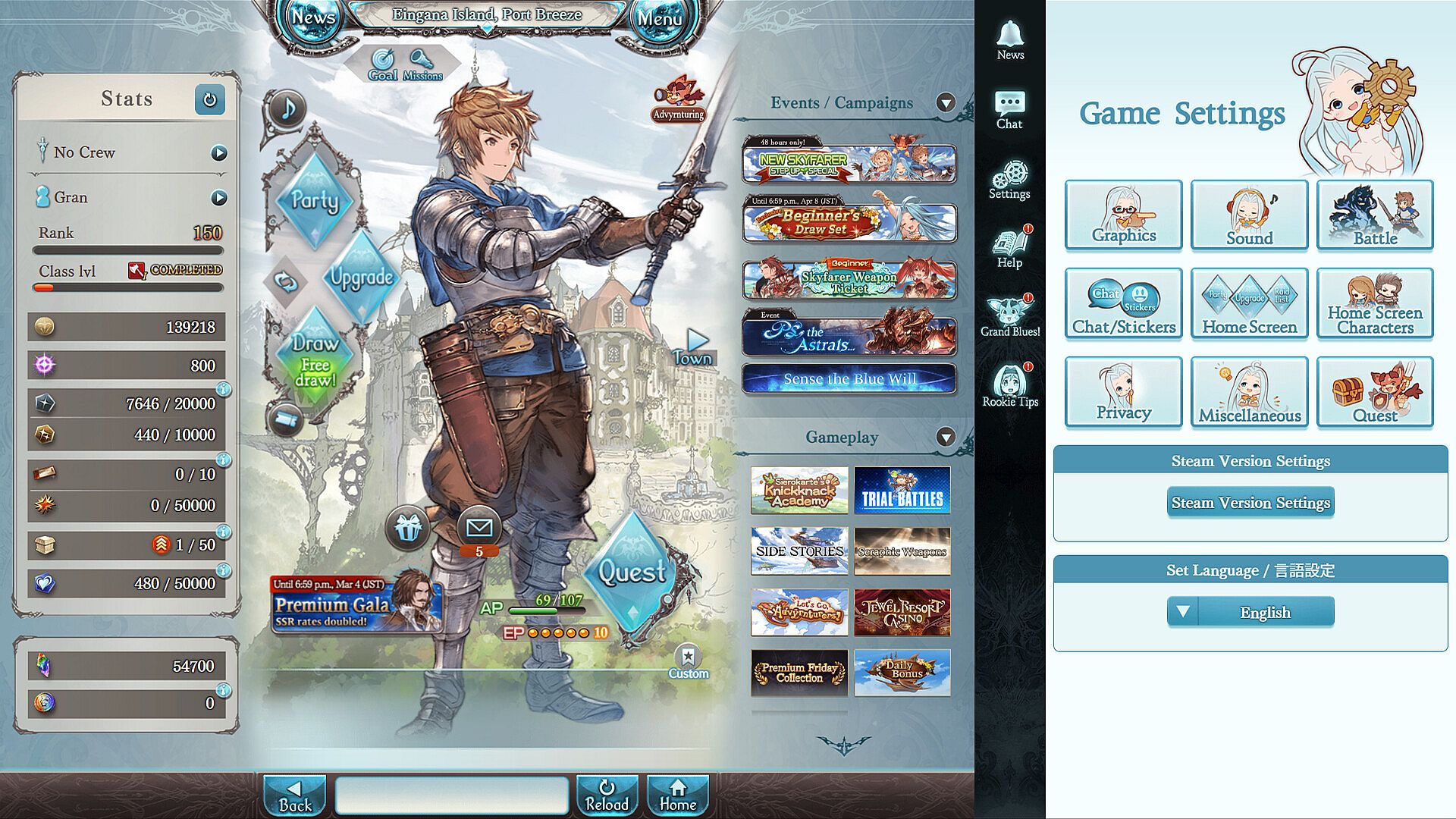 Note: Existing Granblue Fantasy accounts can’t be linked to a Steam account.