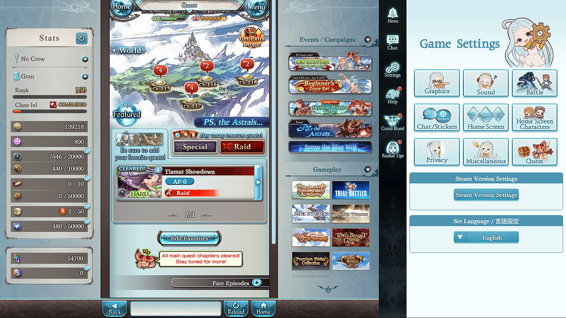 Beyond the main quest lies myriad tales—sometimes heartfelt, sometimes lighthearted, but always rich in character. Each encounter is brought to life with full voice acting, and every new crewmate brings their own story, with fate episodes that delve deeper into their lore. Discover your favorites, strengthen your crew, and forge parties to surmount any challenge. In these boundless skies, Granblue Fantasy offers countless ways to play, and countless reasons to fall in love with the journey.