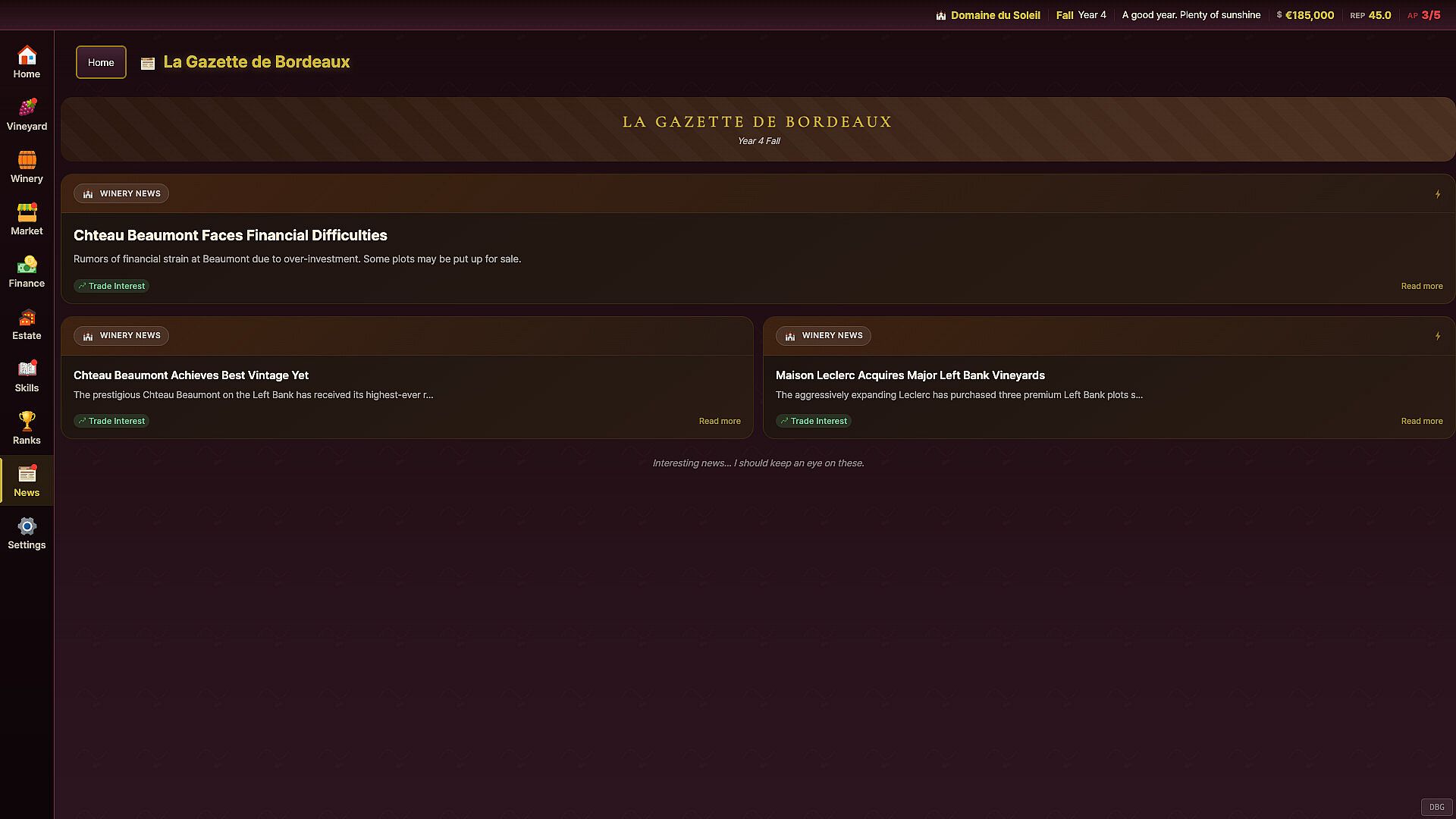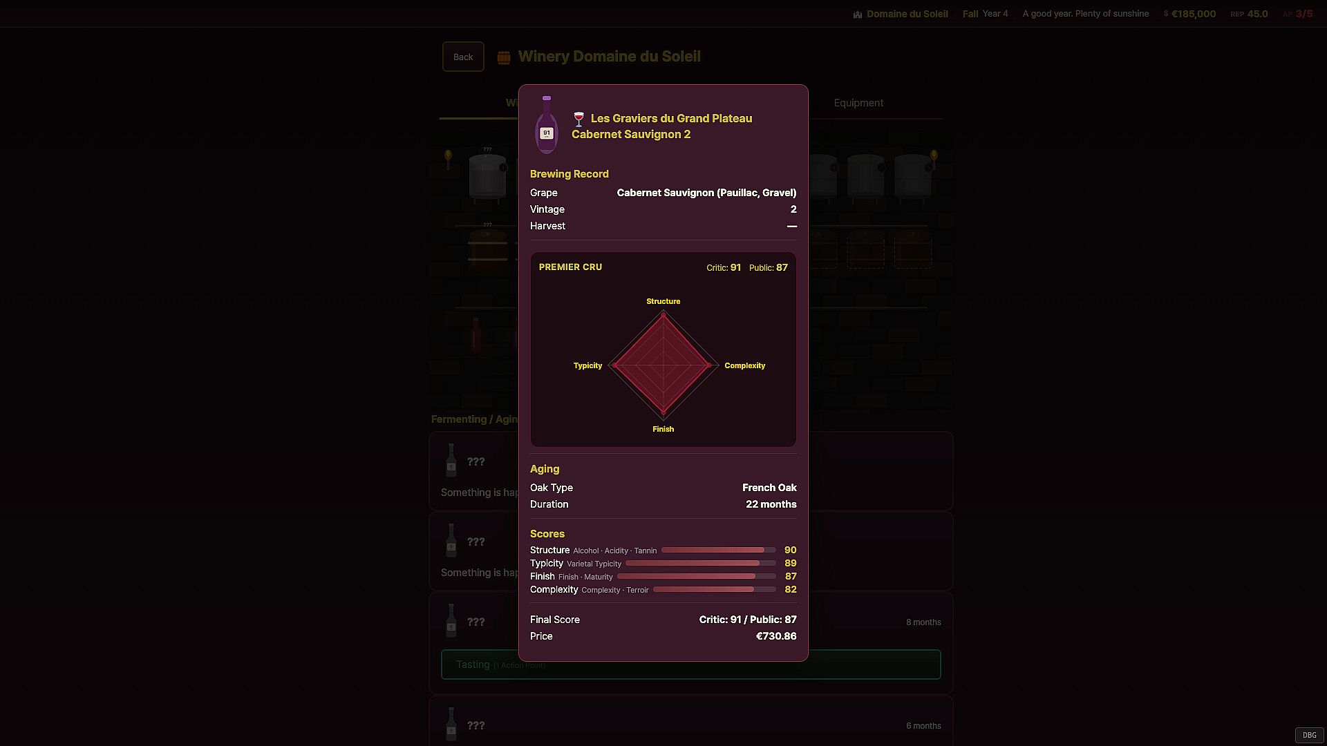 Grand Cru: The Winemaker is a deep wine estate management simulation set in Bordeaux, France. Start with a modest
