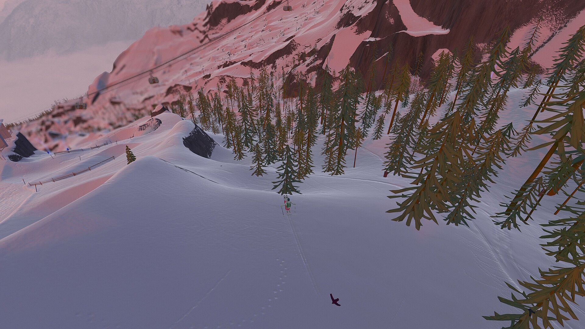 Explore massive ski resorts with busy slopes, deep forests, steep cliffs, untouched backcountry, and lively Après Skis. Ride the lifts, explore the pistes, or head off-piste to discover secret spots. The mountains are non-linear, giving you the freedom to explore anywhere.