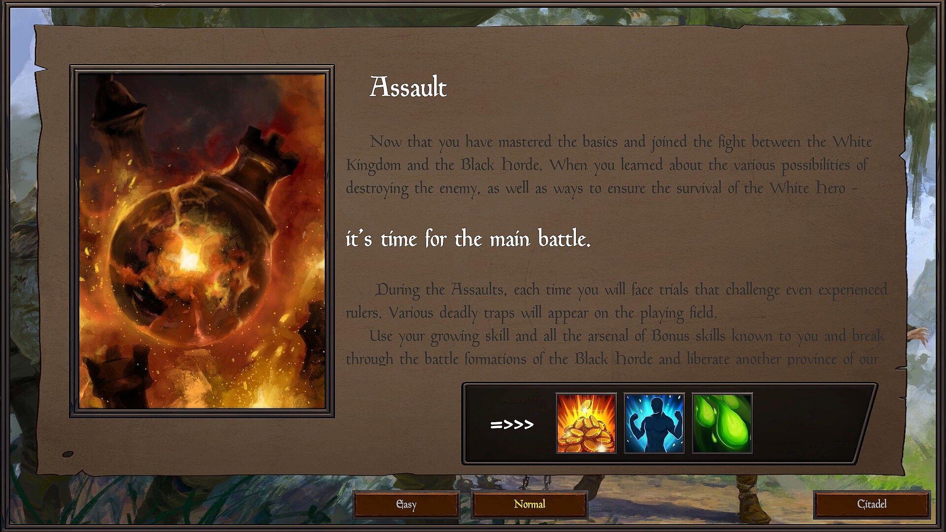 - there will be a lot to do. You will either have to go on a decisive Assault, or retreat in search of a safe haven in order to save the accumulated resources and the life of the hero. Either manage the Citadel, or choose the direction of the main attack on the campaign map. Gather resources from subordinate domains or solve a variety of puzzles that have multiple solutions.