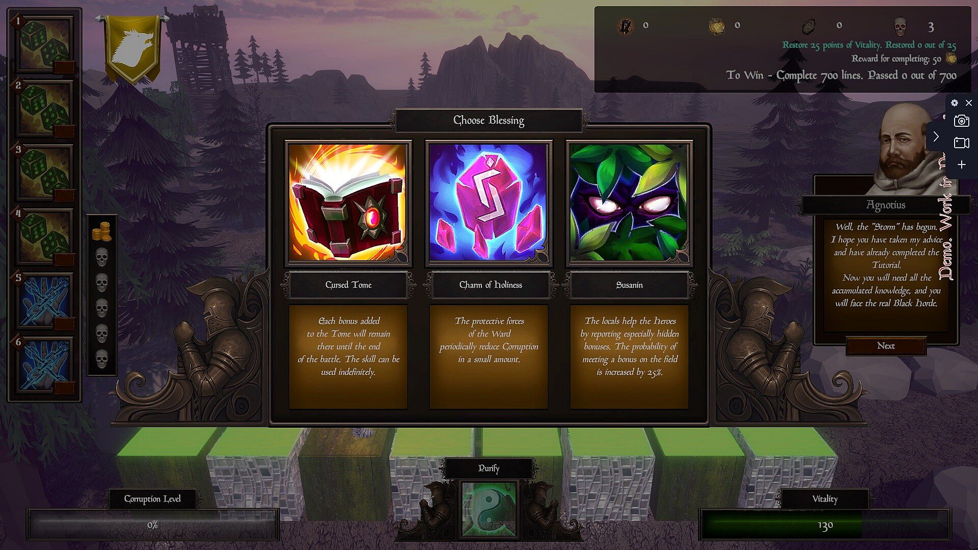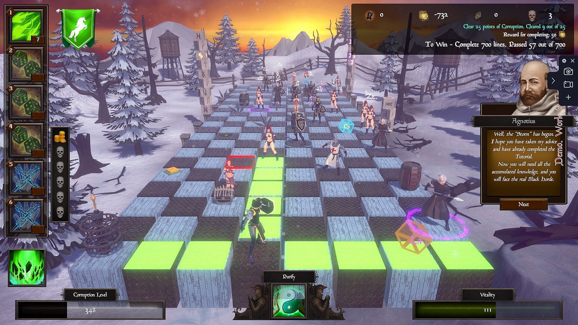 In the process of working on the game, We aimed to create a game "for more than one evening", which will give players a varied and enjoyable gaming experience. New mechanics are revealed gradually as you progress through the main Campaign. We have provided several different ways to learn including a full-fledged educational campaign, Bonusopedia, the storyteller Agnotius and others.
