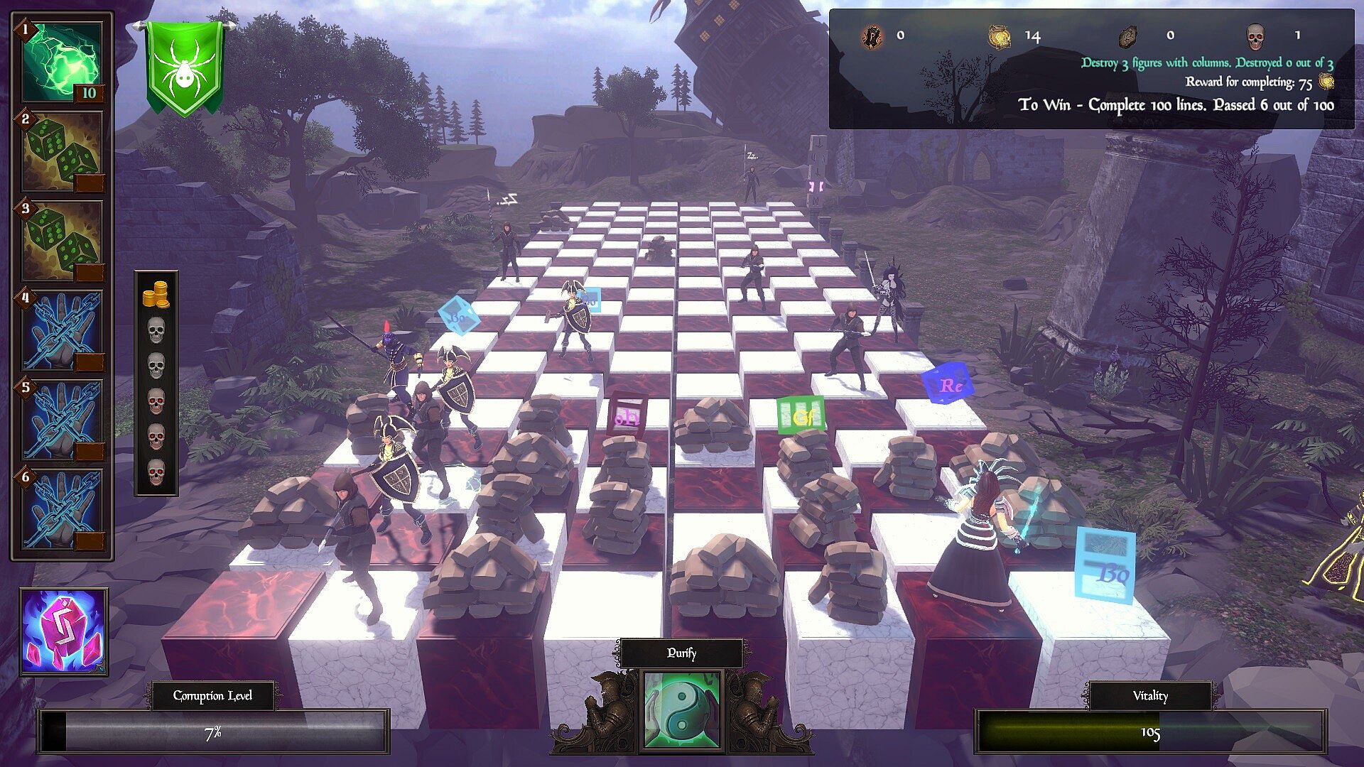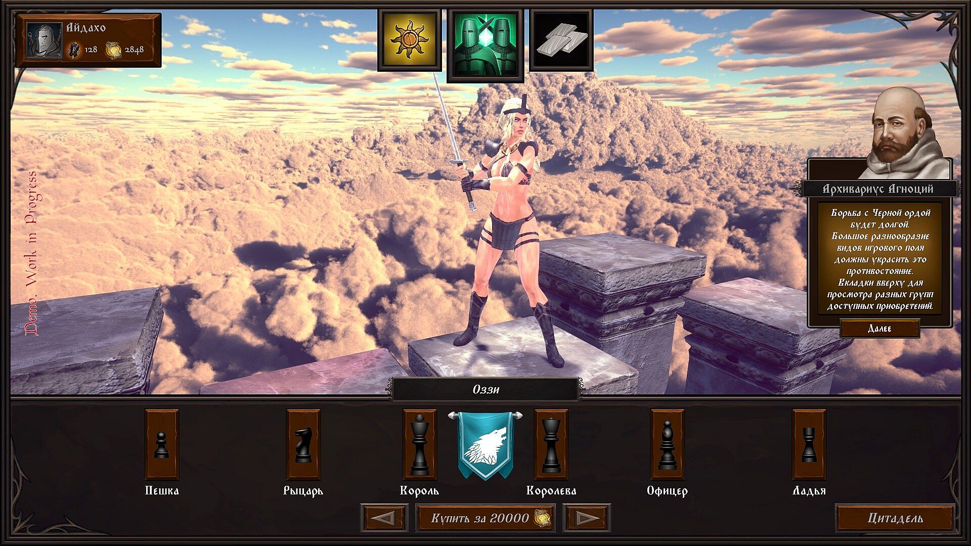 - when attacking enemy territories, try to complete the tasks that are constantly given by the Administration of the Whitehills Citadel. As a reward, you will receive Glory Points that can be used at the Merchant. The Merchant will help you recruit new chess clans. The chess clan selected as a priority will give the heroes an additional special advantage in battles.