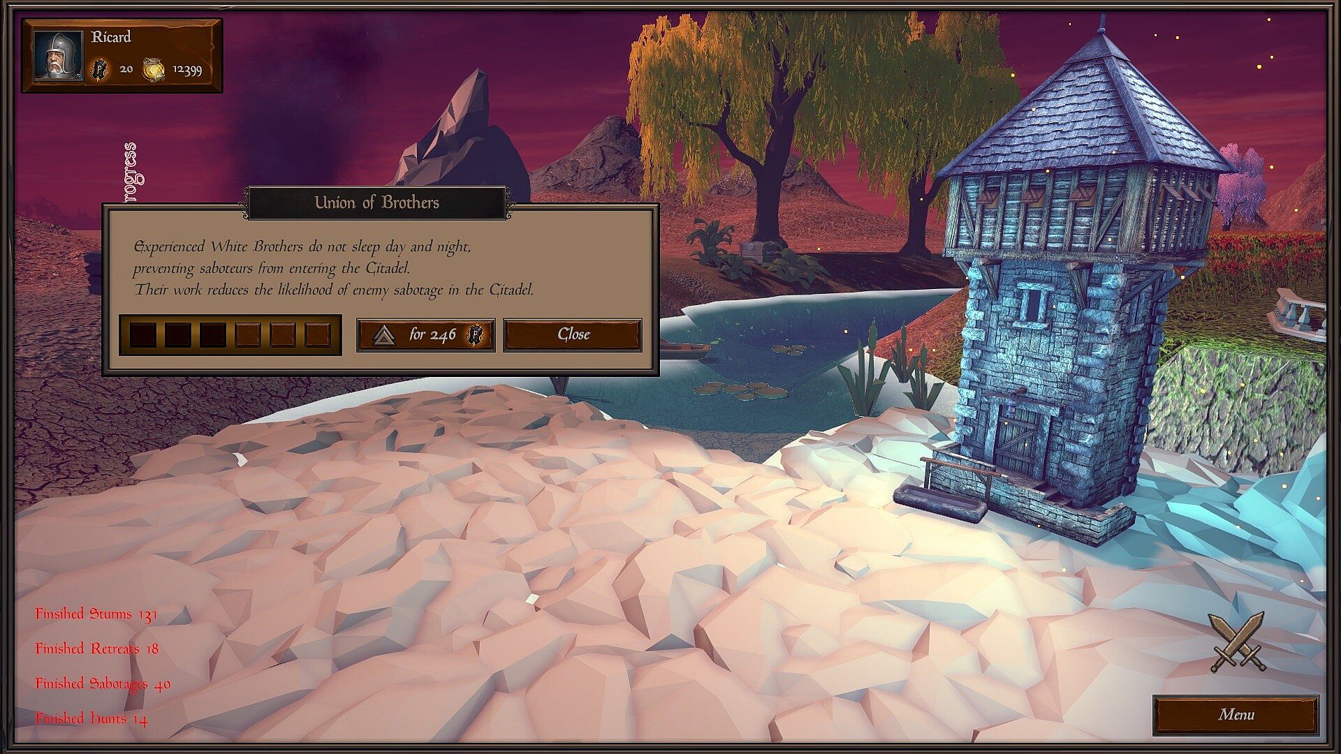 - even at night, the capital of Whitehills cannot be completely safe. Constant Sabotage will be a problem until victory. To develop Counterintelligence and put up new barriers for enemy saboteurs to enter the city or solve puzzles where there is no room for error, and then, with the help of the Inquisition, take away valuable resources from captured enemies, again, the Ruler decides.