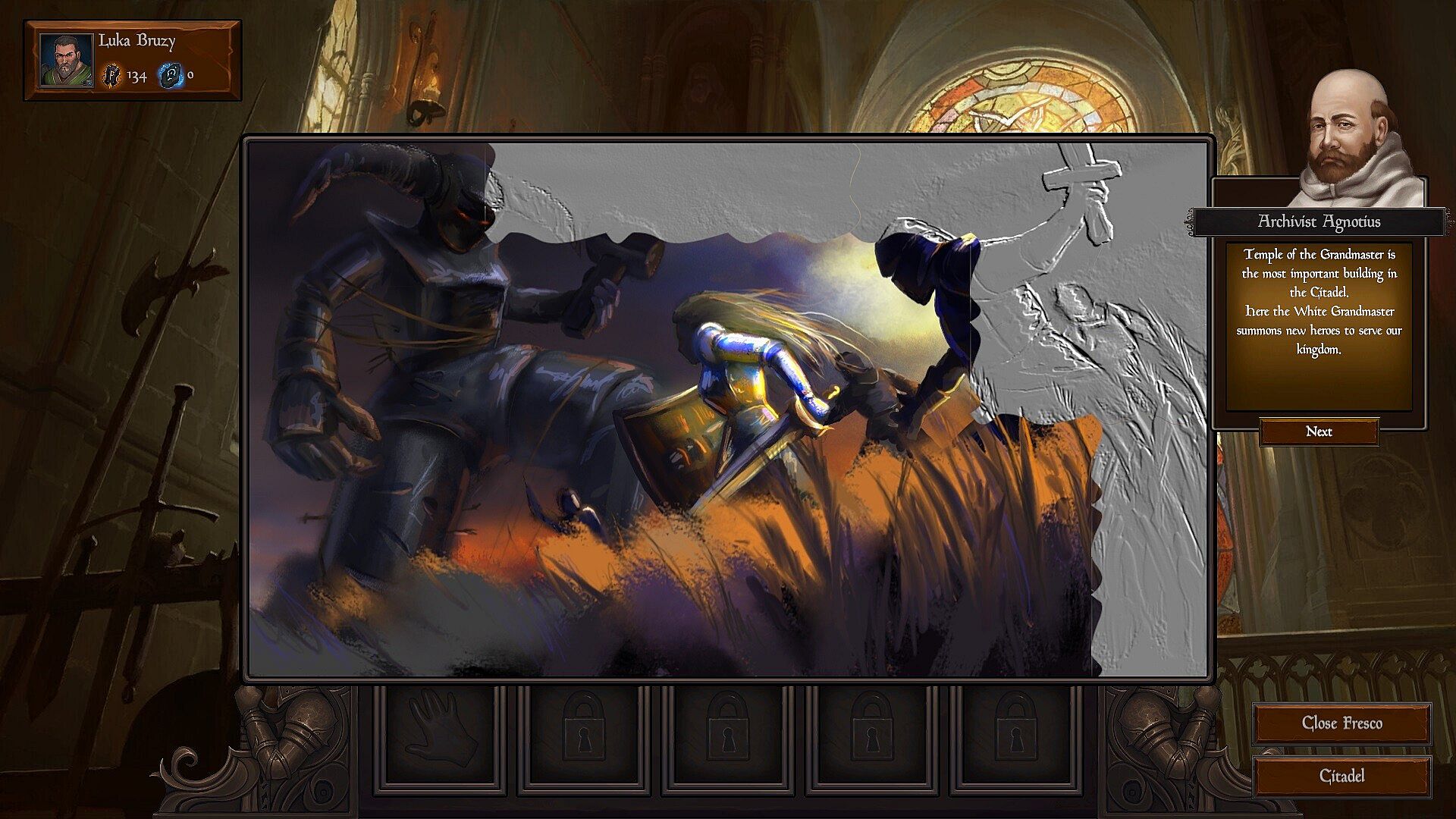 - destroy the most powerful figures of the Black Horde - queens, who are always armed with smashing two-handed swords and get Revelations. With the help of the received Revelations and archivist Agnotius, you will be able to restore the frescoes in the Temple of the Grandmaster and learn the background of this conflict and possibly other secrets.