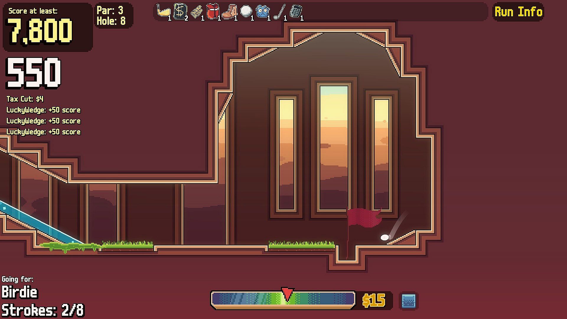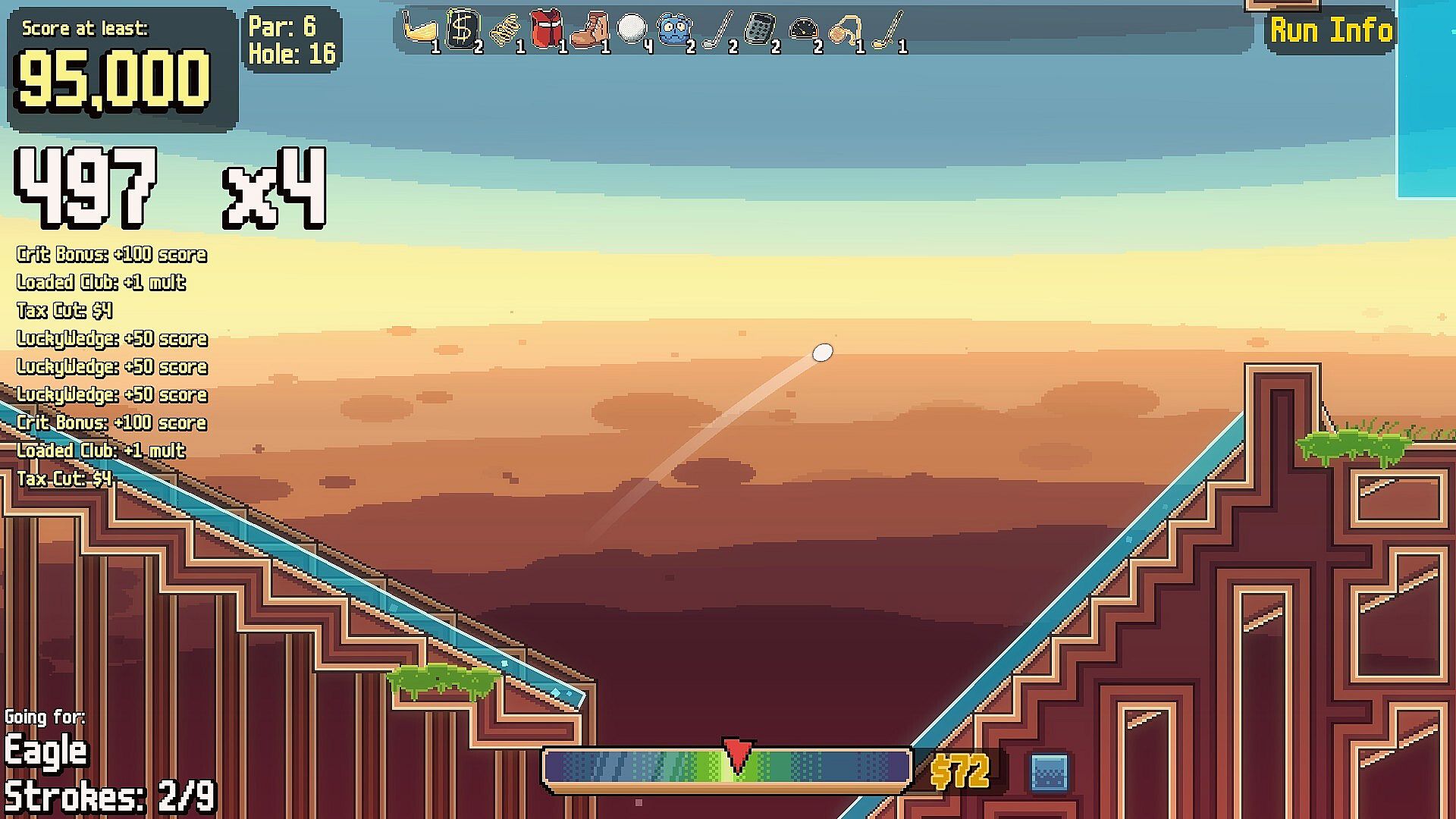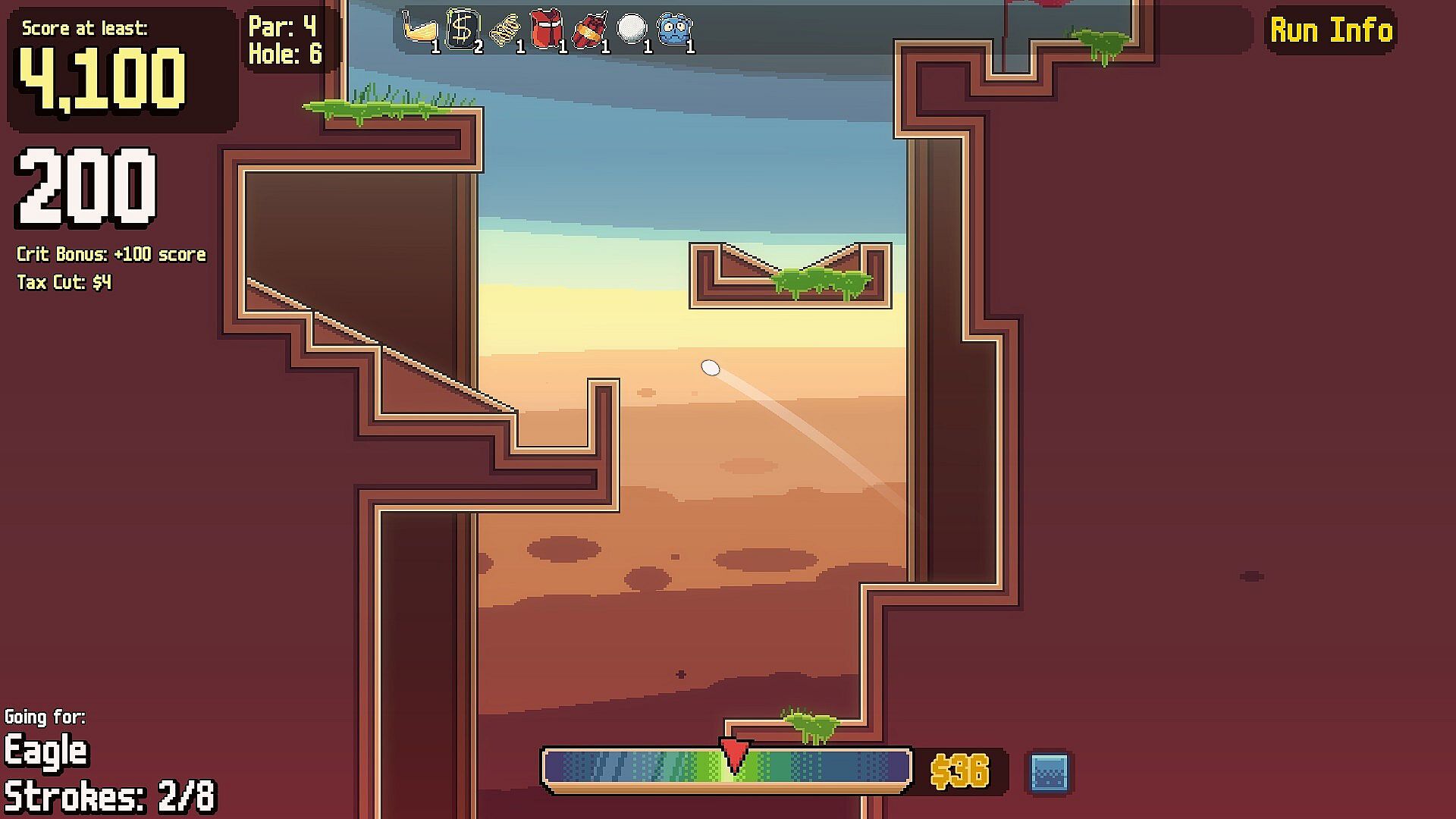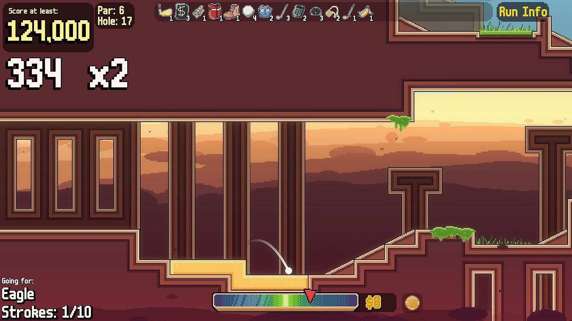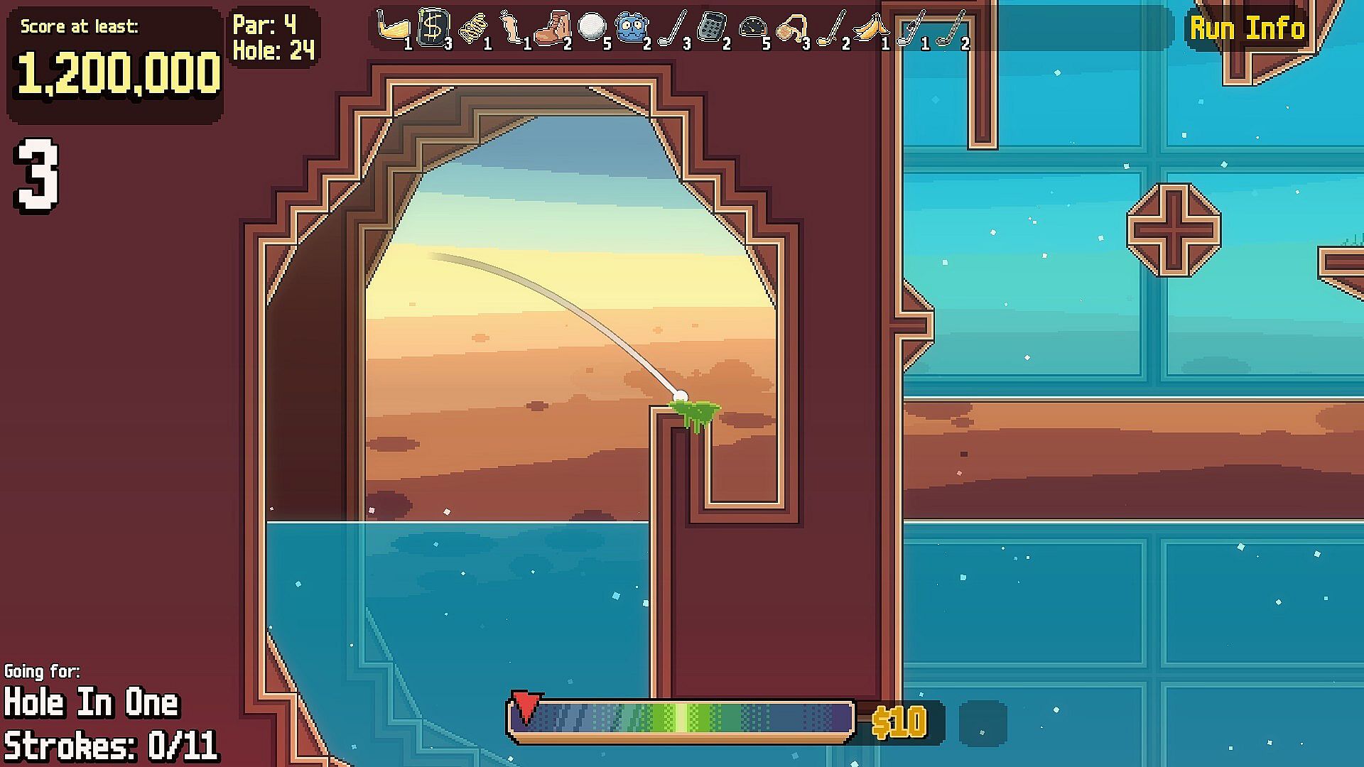 Your goal is simple: get as far into the course as you can and beat every hole. You’ll golf your way through each round, building up score along the way. Getting the ball into the hole is key, but items are just as important.