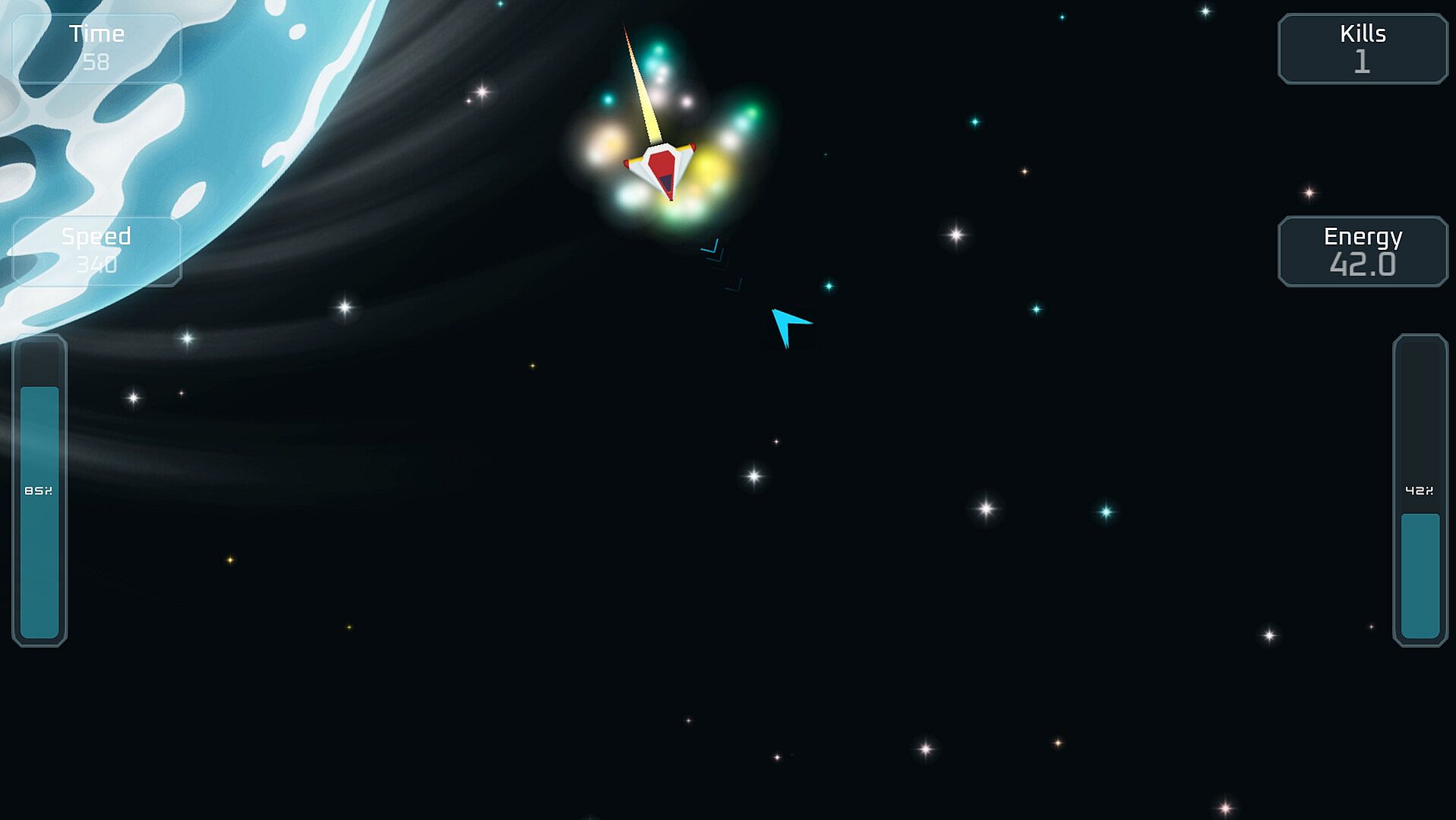 Destroy & Replenish: Hunt down synchronized orbital targets to scavenge fuel and extra time. Chain your takedowns to keep your mission alive.