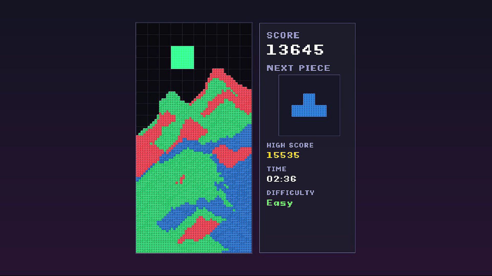 Go head-to-head locally with a friend. Both players receive the same pieces, so it's pure skill that decides the winner.