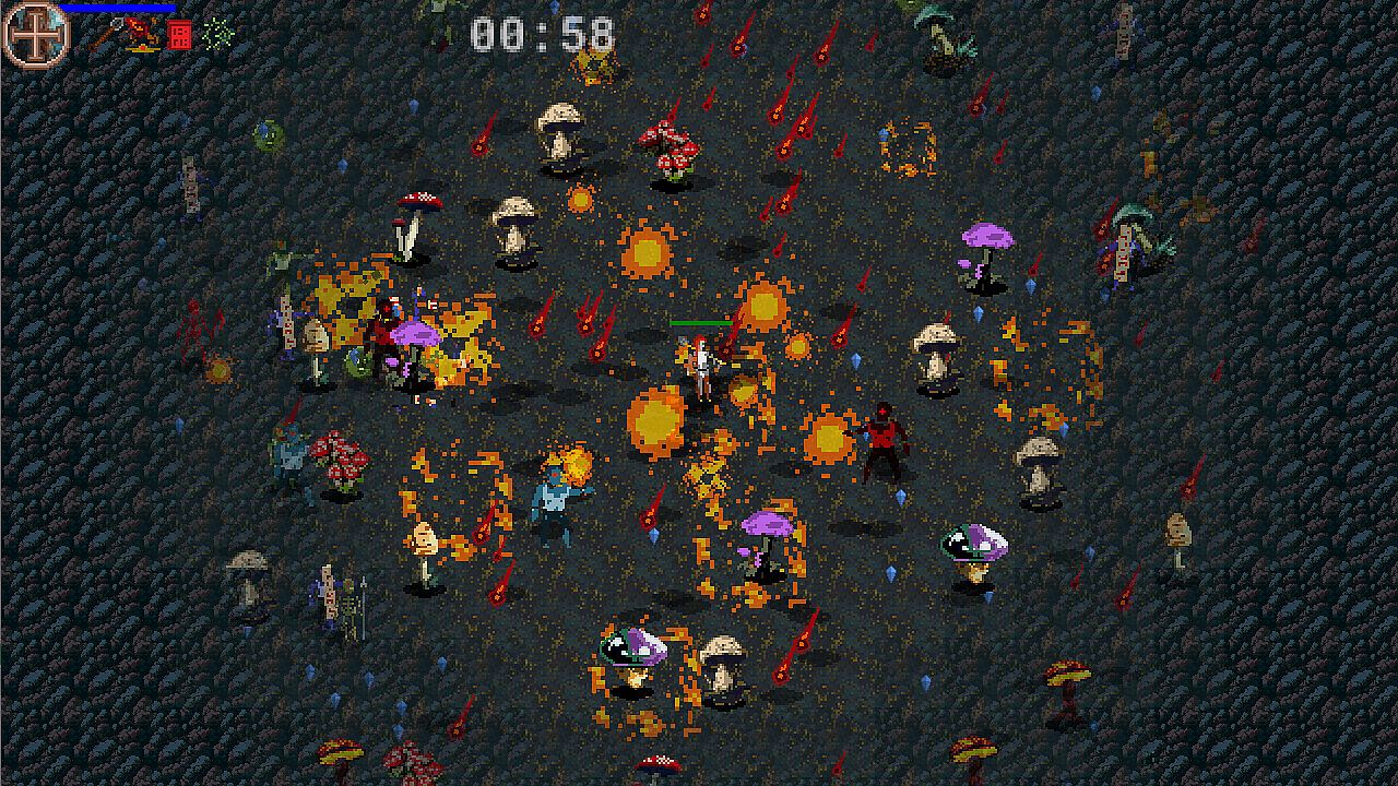 Gravepact is a survival roguelite where the goal is to destroy as many incoming enemies as possible, while collecting experience to spend on attacks, passive items and skills to build your character into a powerful conduit of destruction that lays waste to everything in your way.