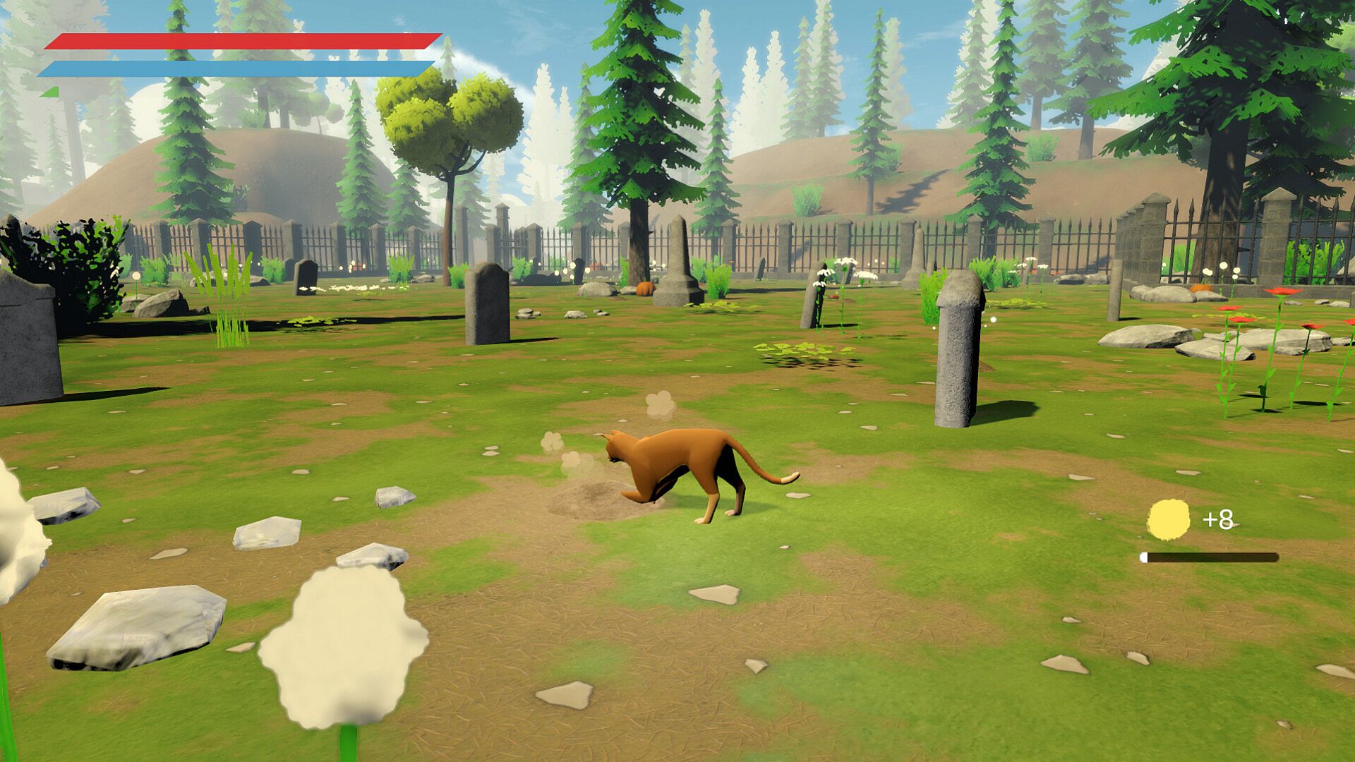 Graveyard Cat is an action RPG with an emphasis on exploration and mystery! Traverse a large and open graveyard while uncovering it's many mysteries, battle through ancient dungeons and bizarre facilities, and brave the many challenges that you may face.