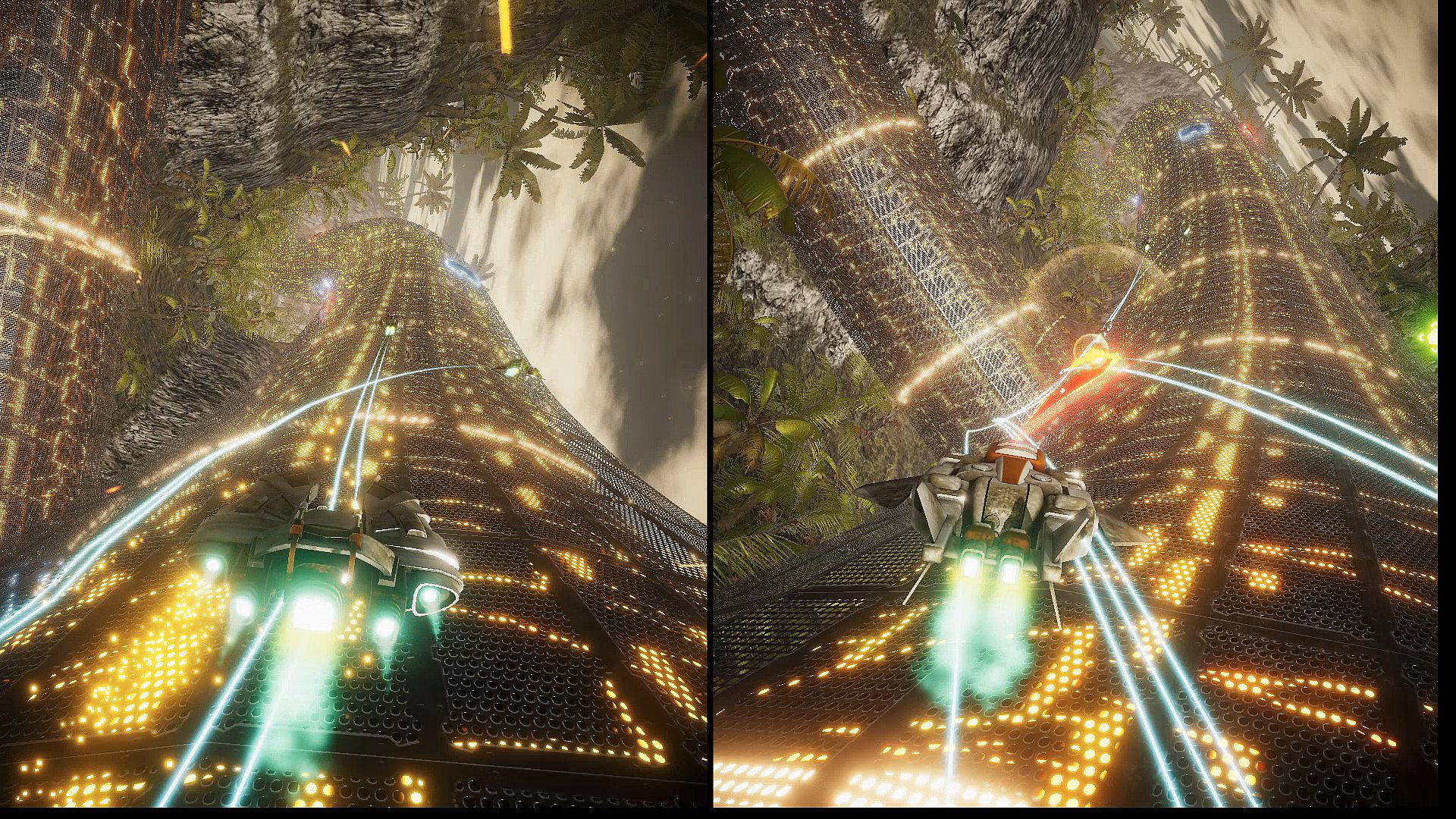 Skill and precision piloting are required to follow the optimum line along with strategic use of pickups, powerups and weapons in order to progress through the race series.