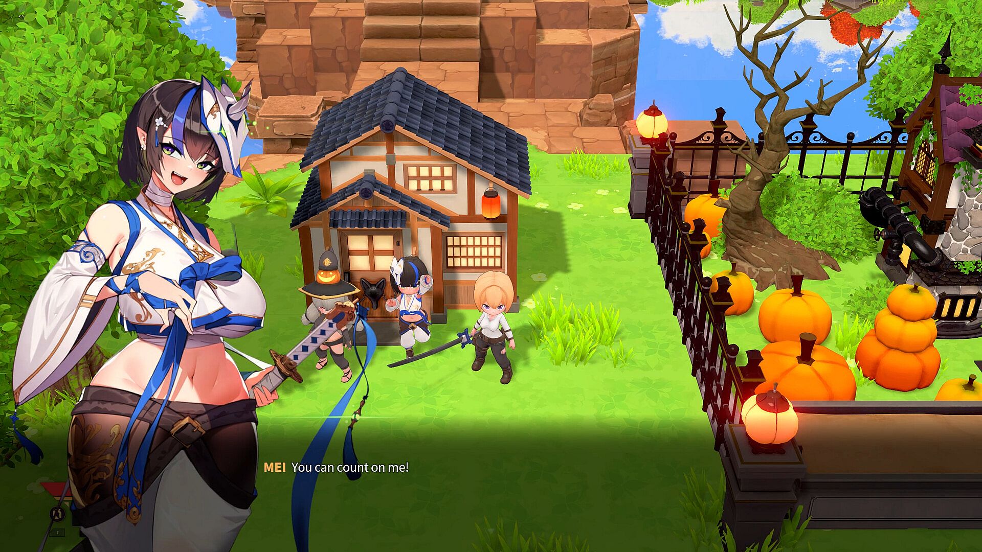 Share love with the girls in the village or enhance your equipment to prepare for the next adventure.