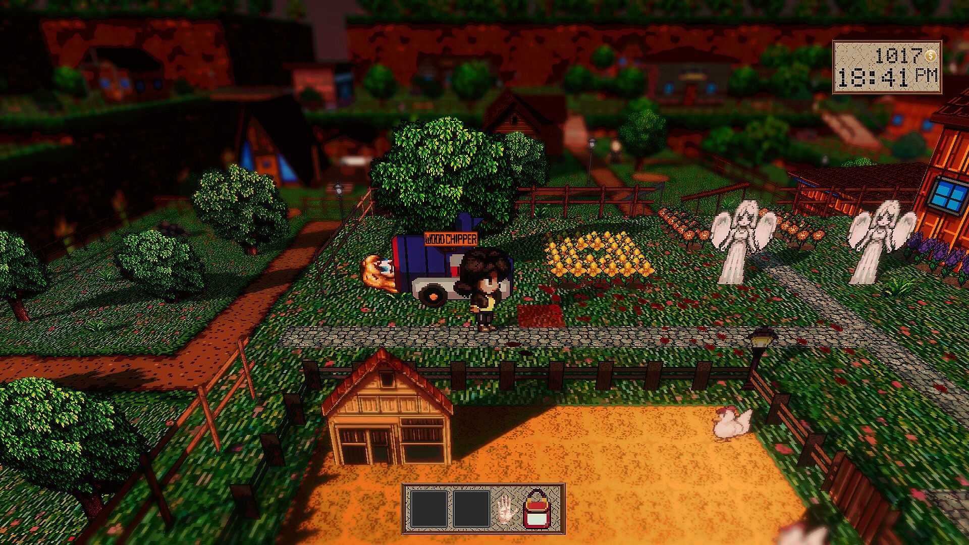 Farm by day, murder by night – Build your farm by planting crops, raising livestock and decorating your home. Help the community by beautifying the town, doing quests and making small talk with the lovely townsfolk… all before turning them into compost.